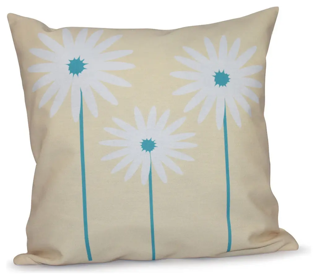 Daisy May Floral Print Outdoor Pillow, Caribbean, 20"x20"