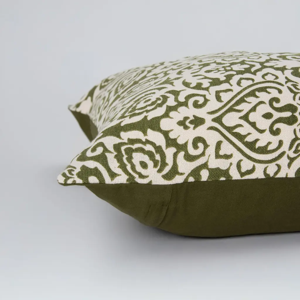 Damask Print 100% Cotton Poly Filled Decorative Throw Pillow - Green / Polyester