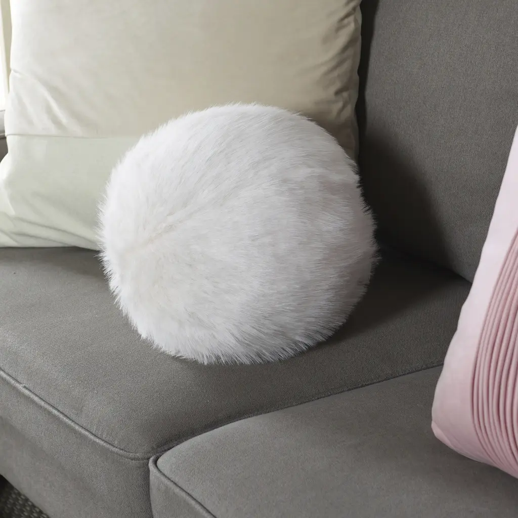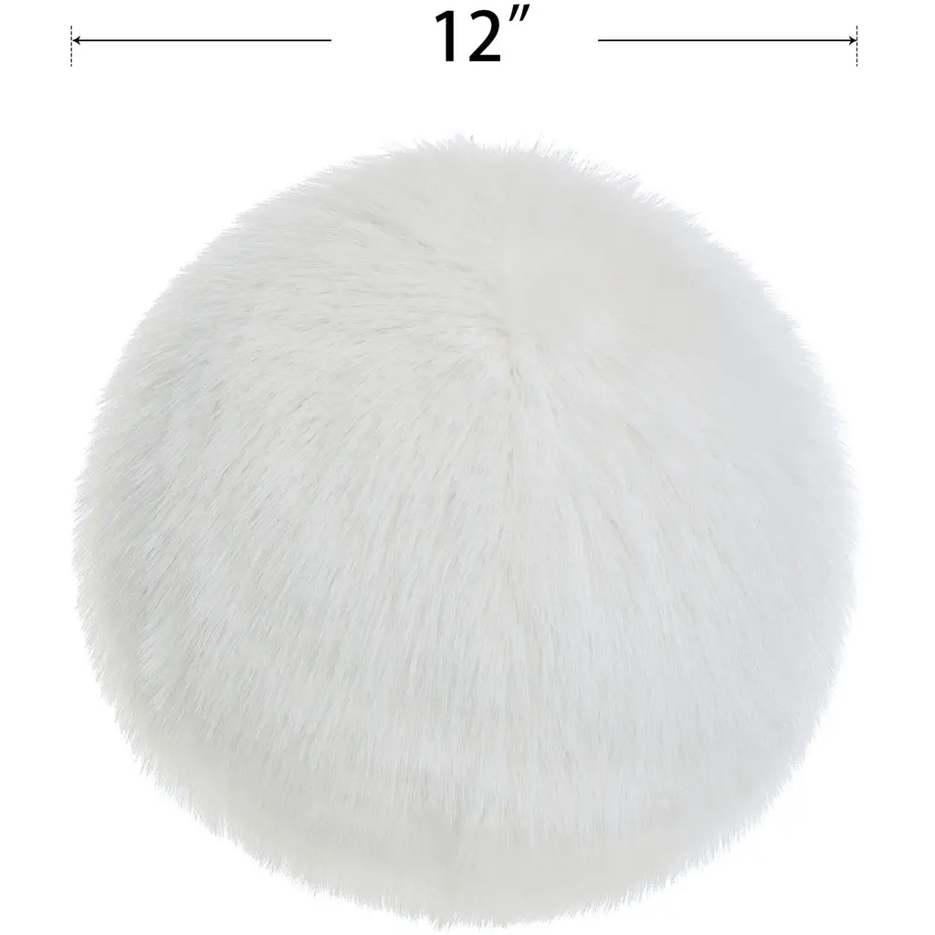 Dan Foley - Circle Throw Pillow - Ivory Faux Fox Hair with Feather Filling - 12 X 12