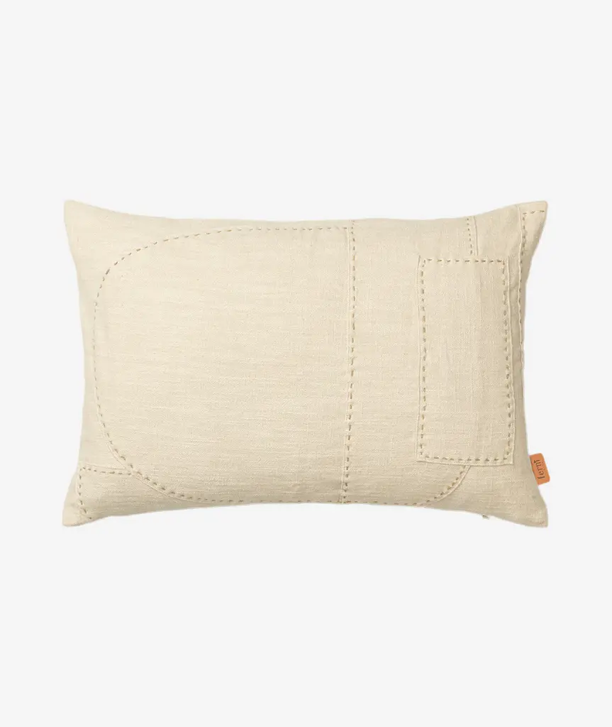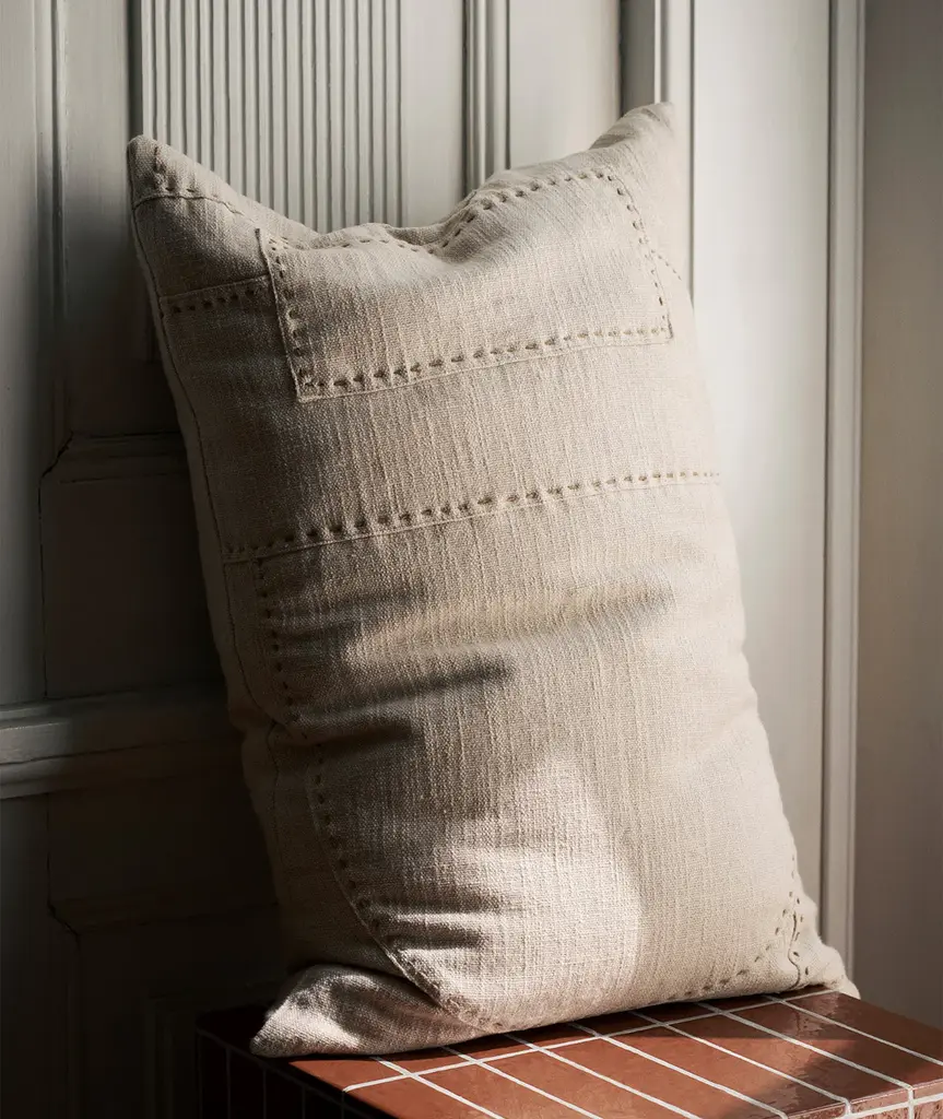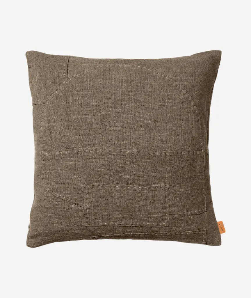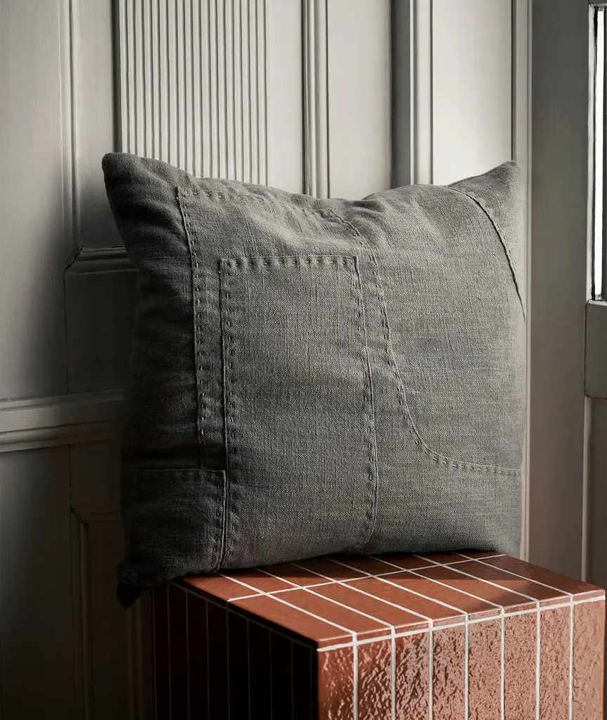 The Darn Cushion, created in collaboration with artist Leise Dich Abrahamsen, showcases monochrome, layered patchwork details and oversized hand stitching. Made from a blend of cotton and linen, the soft cushion lends a textural, tactile expression to any setting.