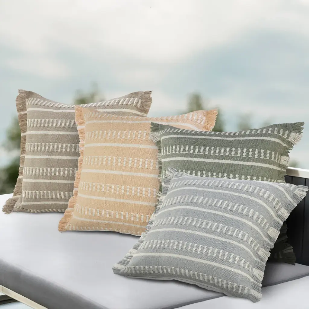 Dash Geometric Indoor Outdoor Throw Pillow, Taupe/white