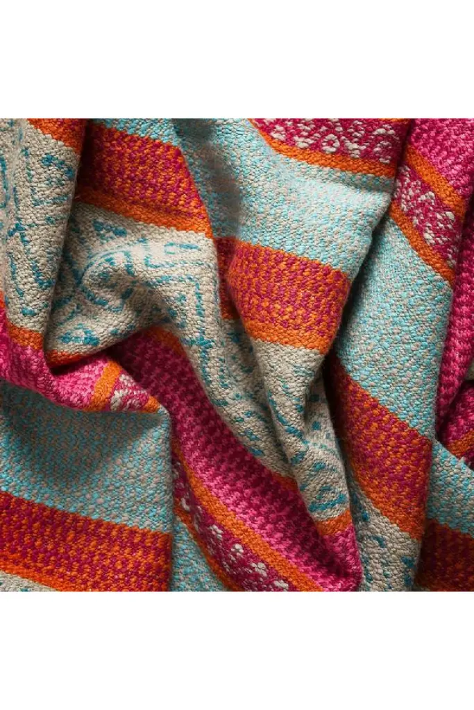 Pampas brings instant texture to any bed, sofa or chair thanks to its chunky stripes and geometric motifs. This design has been paired with our wonderfully tactile Cocktail trim to accentuate the fabric's rugged texture.