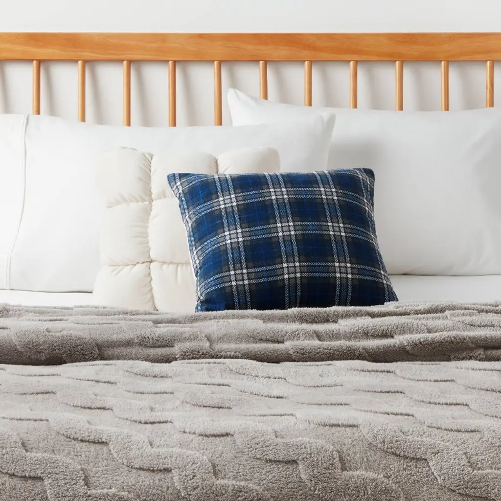 Spruce up the look of your indoor space with this Decorative Throw Pillow Square from Room Essentials™. This 18-inch square pillow showcases a navy blue plaid pattern for a timeless, cozy vibe. Featuring a 100% cotton exterior and a well-filled interior, this throw pillow adds the right amount of comfort and style to your sofa, couch, bench or bed.Room Essentials™: Everyday Value