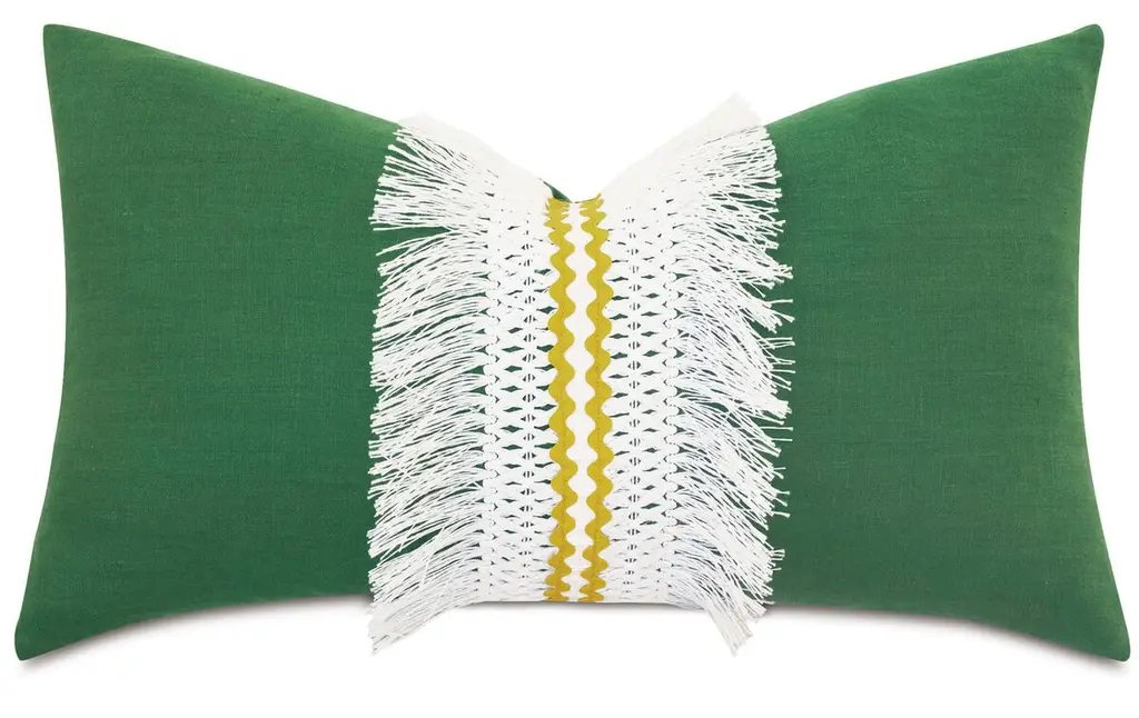 Trendy and stylish, the Delray collection features these lovely colorful pillows. An interesting geometric pattern adorns the bottom half of these items, while keeping a solid stripe near the top that brings these pieces together to create a truly unique item. Spot Clean, Line Dry.