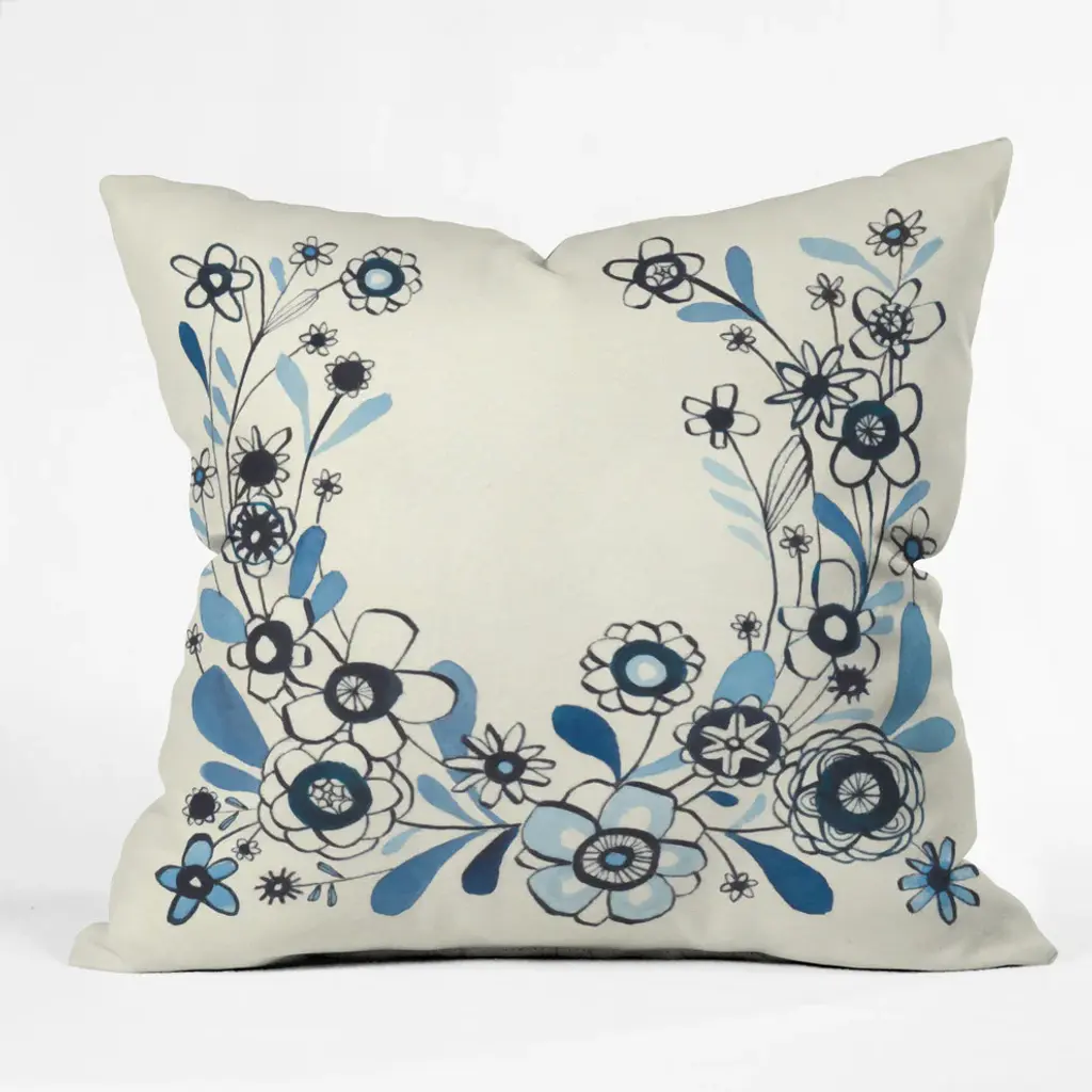 Deny Designs Cori Dantini Modern Delft Floral Outdoor Throw Pillow