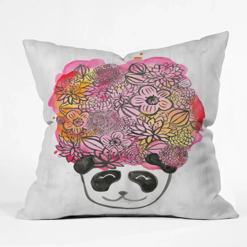 Deny Designs Dash And Ash Panda Flowers Outdoor Throw Pillow