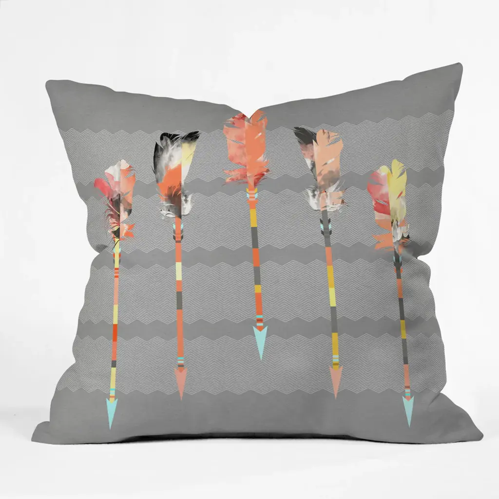 Deny Designs Iveta Abolina Gray Pastel Feathers Outdoor Throw Pillow