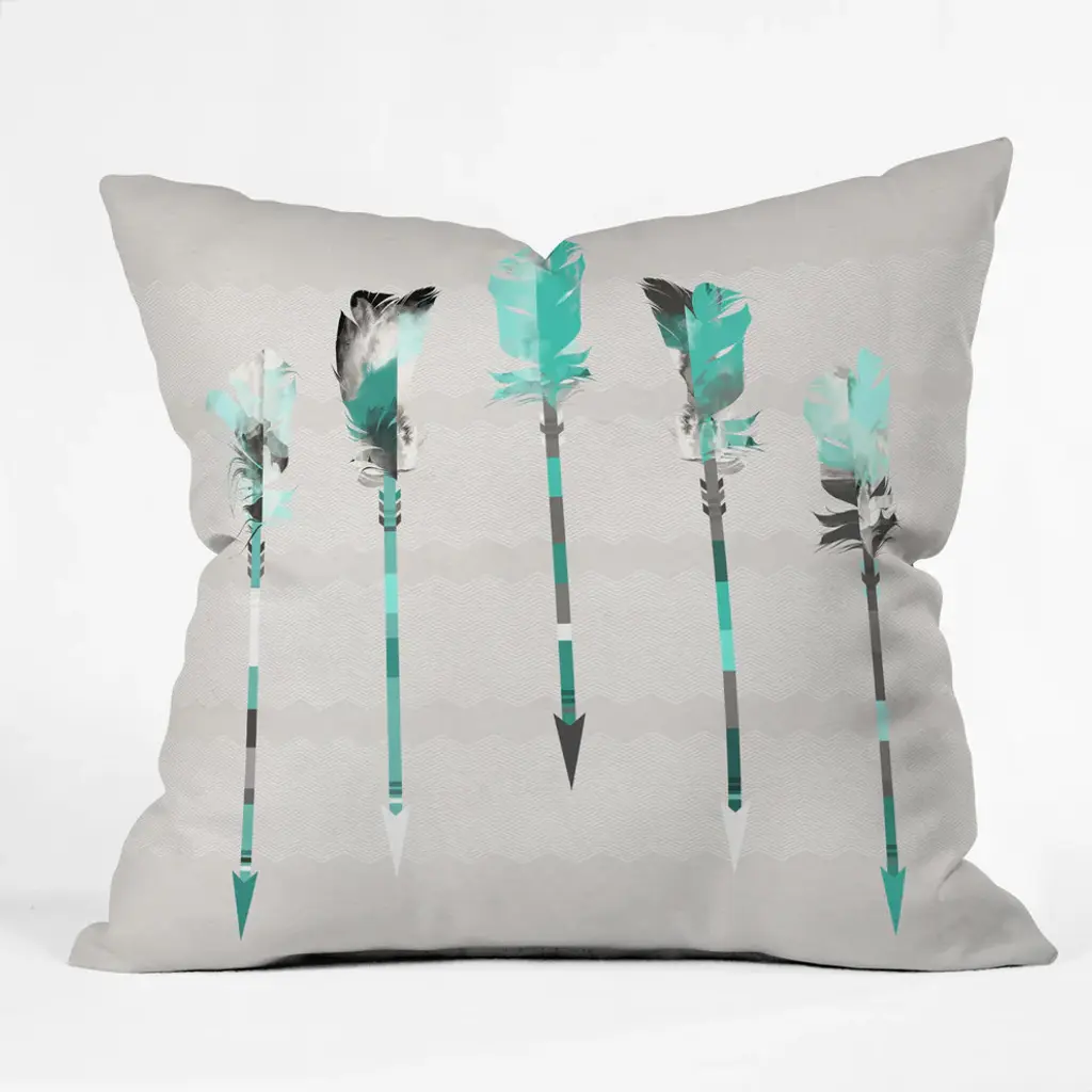 Deny Designs Iveta Abolina Teal Feathers Outdoor Throw Pillow