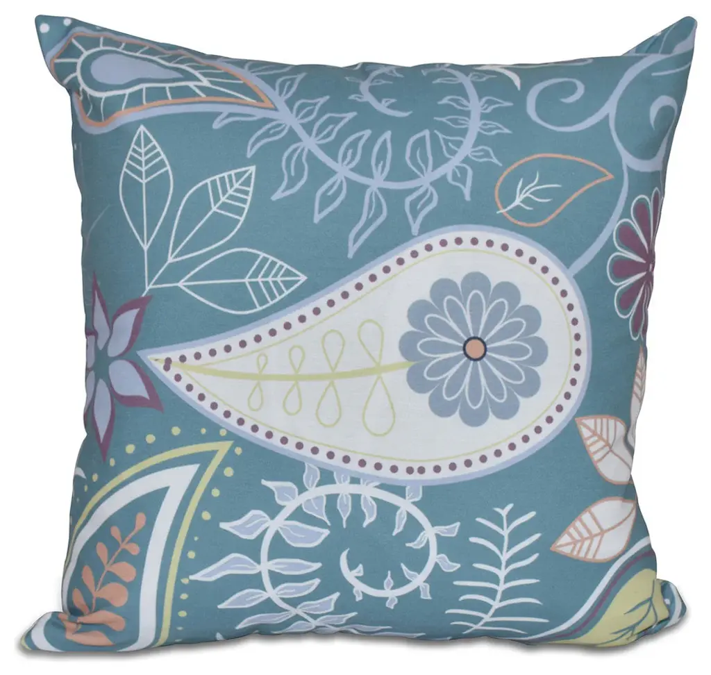 Deny Designs Pimlada Phuapradit Teal Floral Paislys Outdoor Throw Pillow