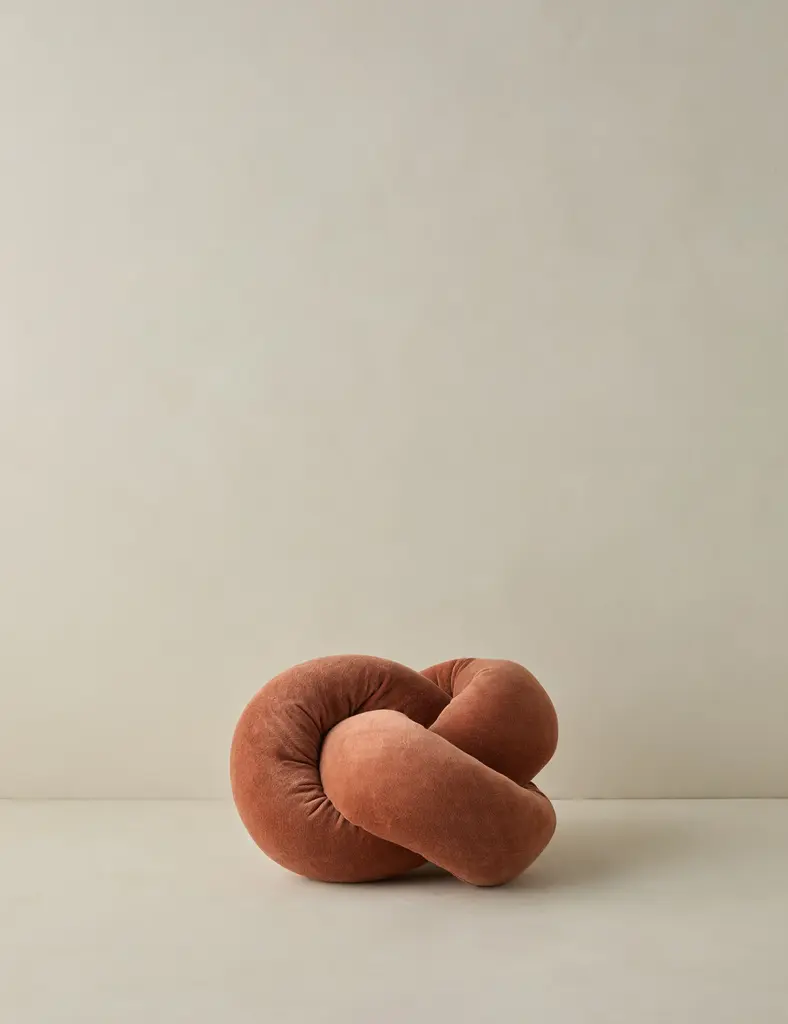 Is your curation feeling flat? Add an artful touch of texture with this velvet throw pillow. Its knotted design brings a brilliant play of color and form to any seat, offering a chic accent pillow for modern decor.