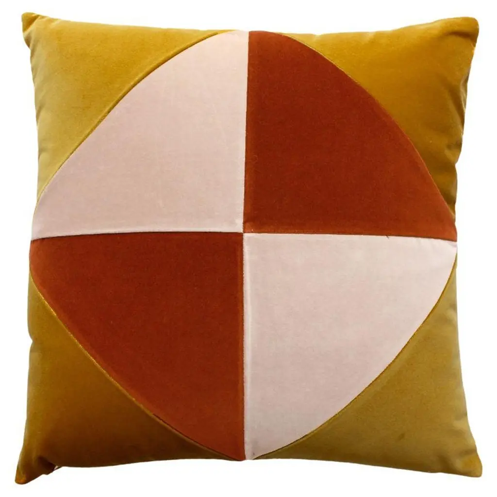 Diamond Mustard & Brick Velvet Deluxe Handmade Decorative Cushion