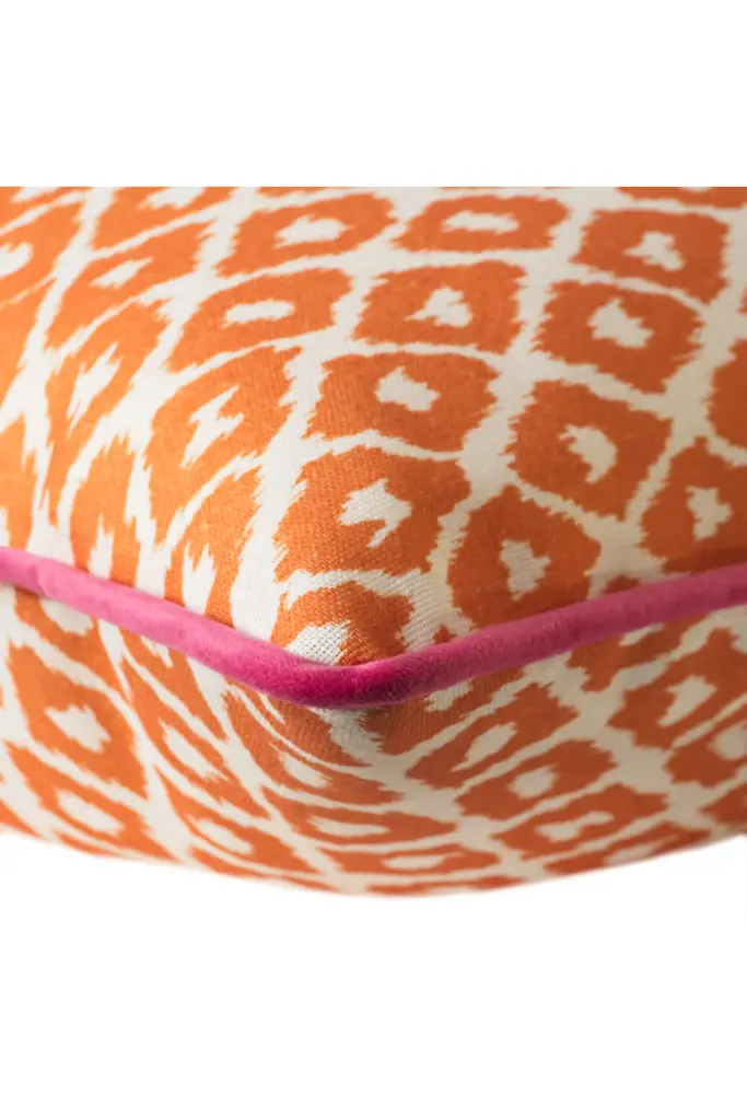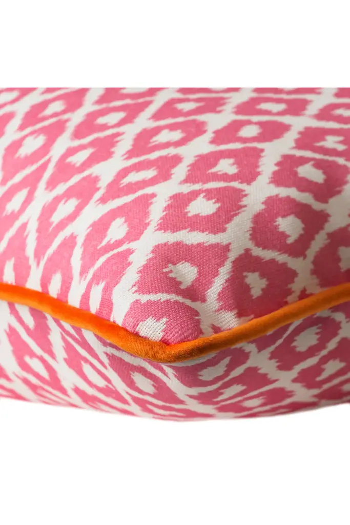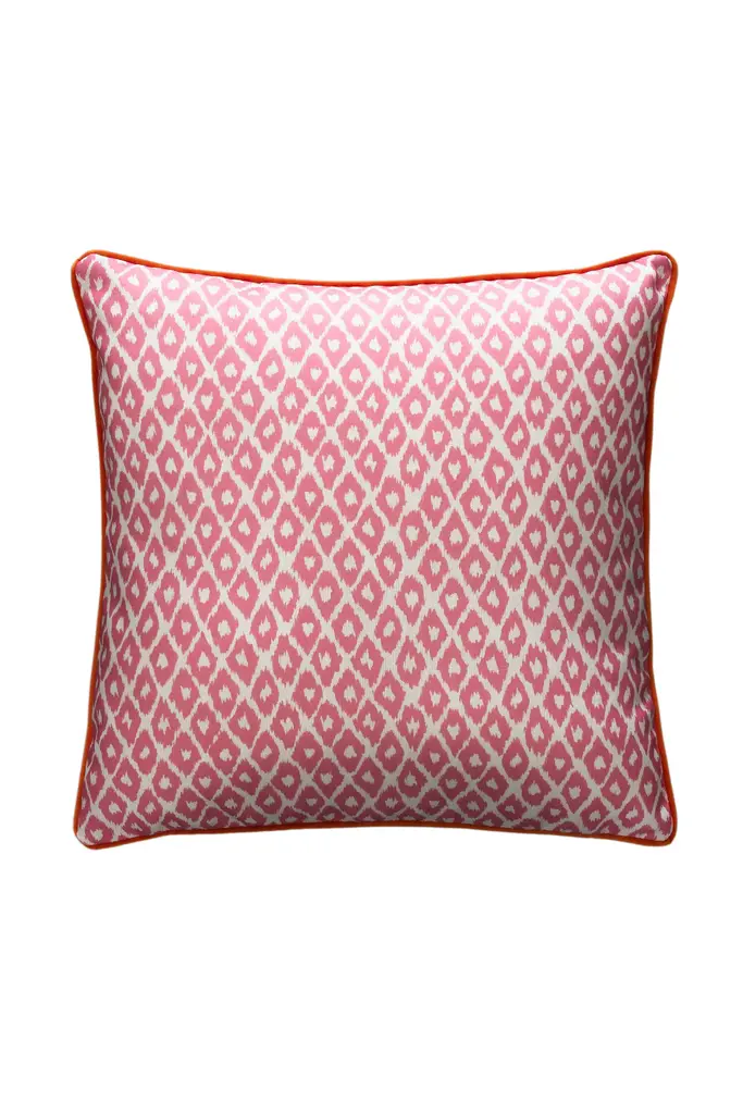 This small diamond-shaped print is inspired by the angular-shaped natural mineral of the same name. In a crisp gray and finished off with complimentary velvet piping this outdoor cushion feels relaxed and contemporary, perfect for turning your outdoor space into a cozy and comfortable living area.This cushion is part of our collection 'The Great Outdoors, it has a shower resistant finish which is also anti-mold, anti-mildew, and anti-microbial, and has been filled with a hollow fiber pad. Each fabric has been printed using EcoFast digital pigment printing methods, which use 50% less water than traditional print methods. We do recommend, however, that these scatter cushions are looked after carefully and are best used in dry weather. As with most outdoor textiles, they prefer to be stored inside when they are not being used, or during periods of wet, cold, or damp weather. - Gray, Orange, Pink