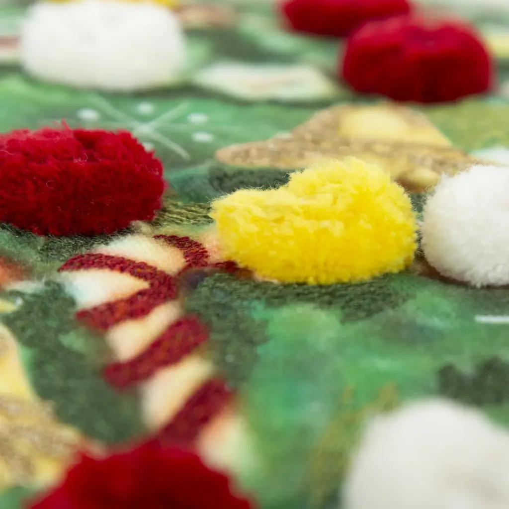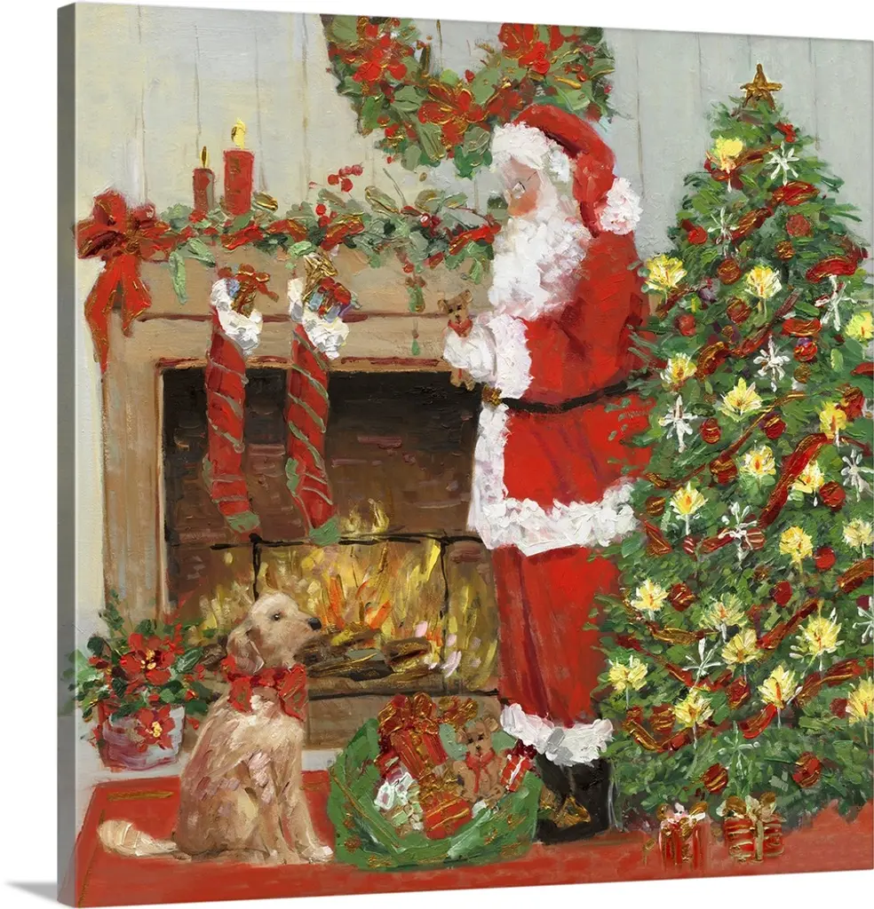 This classic Christmas scene accent pillow honors the ritual of holiday decorating and the joyous intrigue of Santa Claus. This festive pillow in a modern farmhouse design features whimsically printed details and ornate embellishments that create movement and a sense of wonder about the joys and traditions of the Christmas holiday.