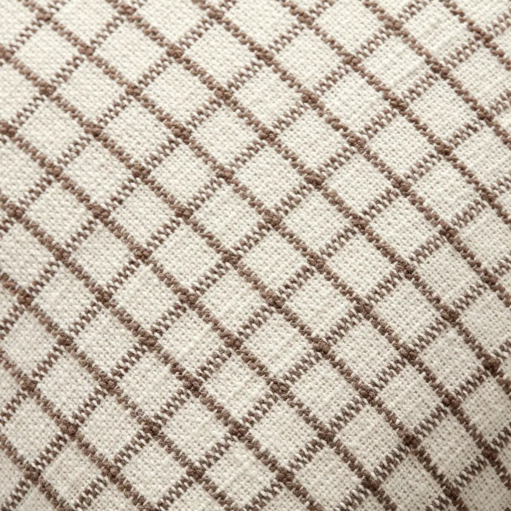 The Dinah throw pillow from Chris Loves Julia x Loloi features a subtle gridded pattern framed with short ruffles for a sophisticated playfulness. This pillow is designed to be a standard size, perfect for styling in living rooms and bedrooms.