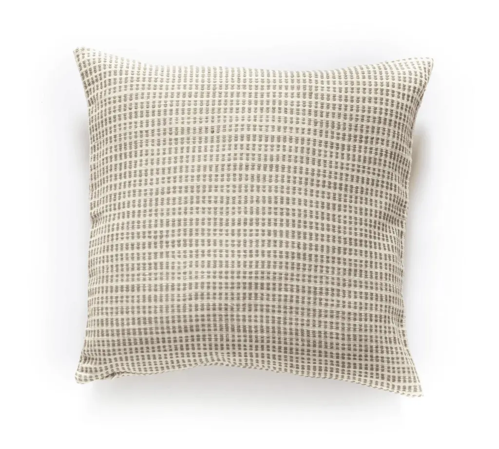 This throw pillow gives visual texture with its intricate dot and dash pattern in neutral taupe. Its soft, comfortable feel and tasteful design create an effortless addition to sofas and chairs.