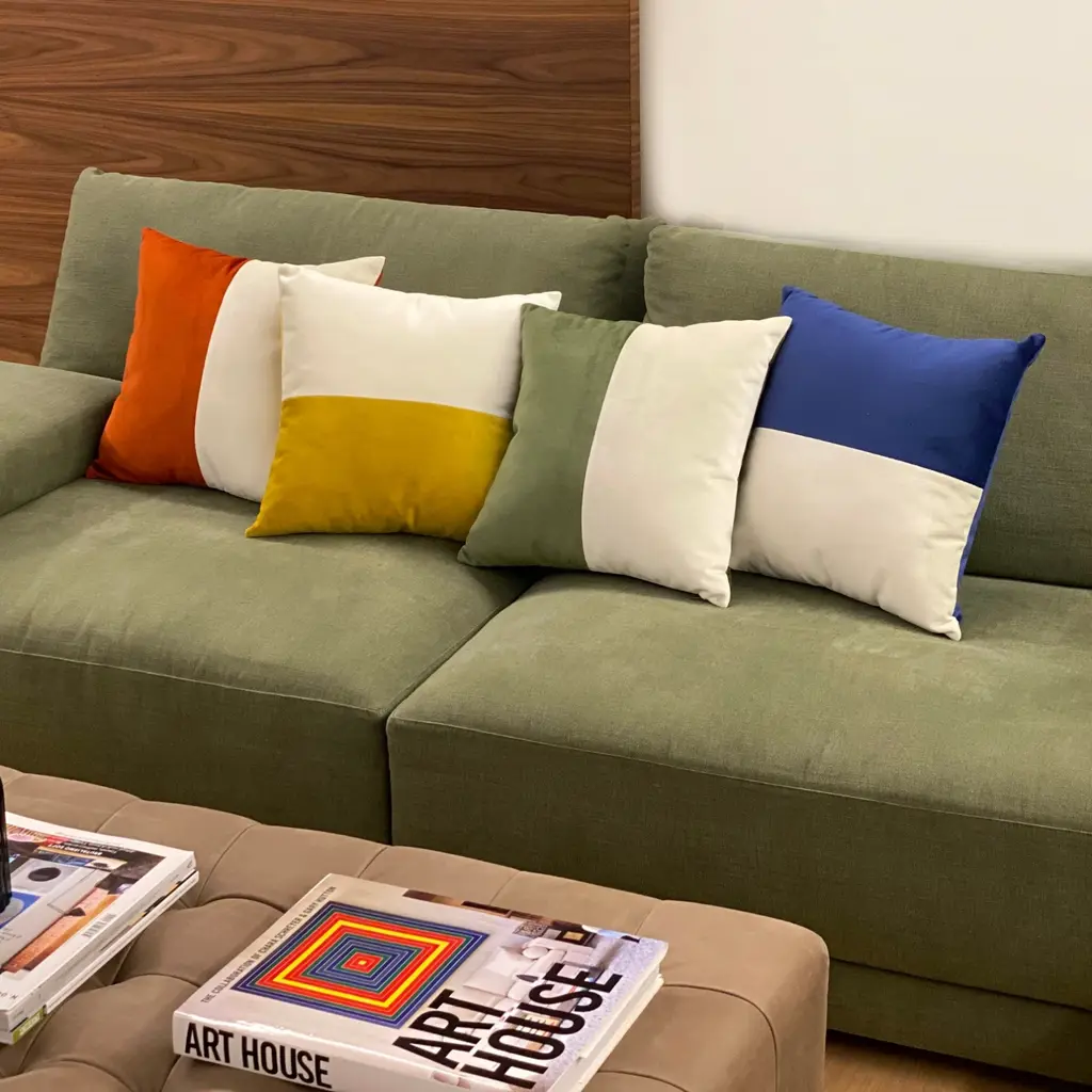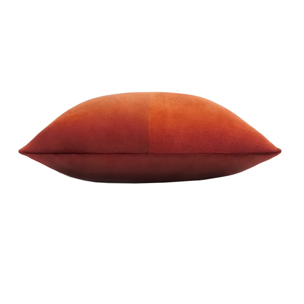 The geometrical shape of this elegant cushion is adorned with a stunning cover that is sophisticated and fresh, adding a delicate decorative accent to a modern living room. The contrasting color and aesthetic balance of this accent piece make it the perfect throw accent to a sofa and armchair in a living room or private study.Entirely handmade, LO DECOR proposes DOUBLE OPTICAL and a DOUBLE VELVET - opaque and iridescent velvet on the front and iridescent on the back - in the nuances of: brick red, mustard, dark green and blue.Arranged with other cushions from the same collection, these pillows will bring a touch of color on a living room sofa or armchair, infusing modern flair to a traditionally styled interior.
