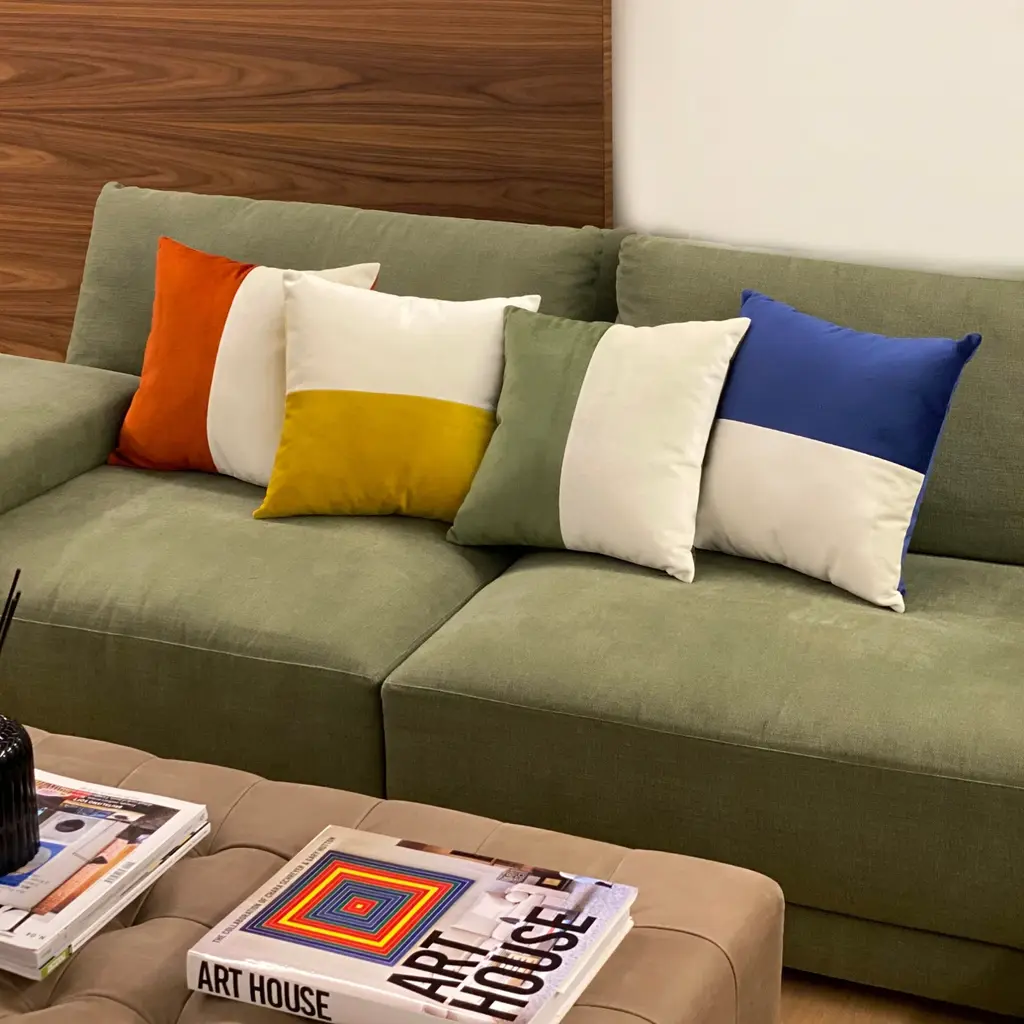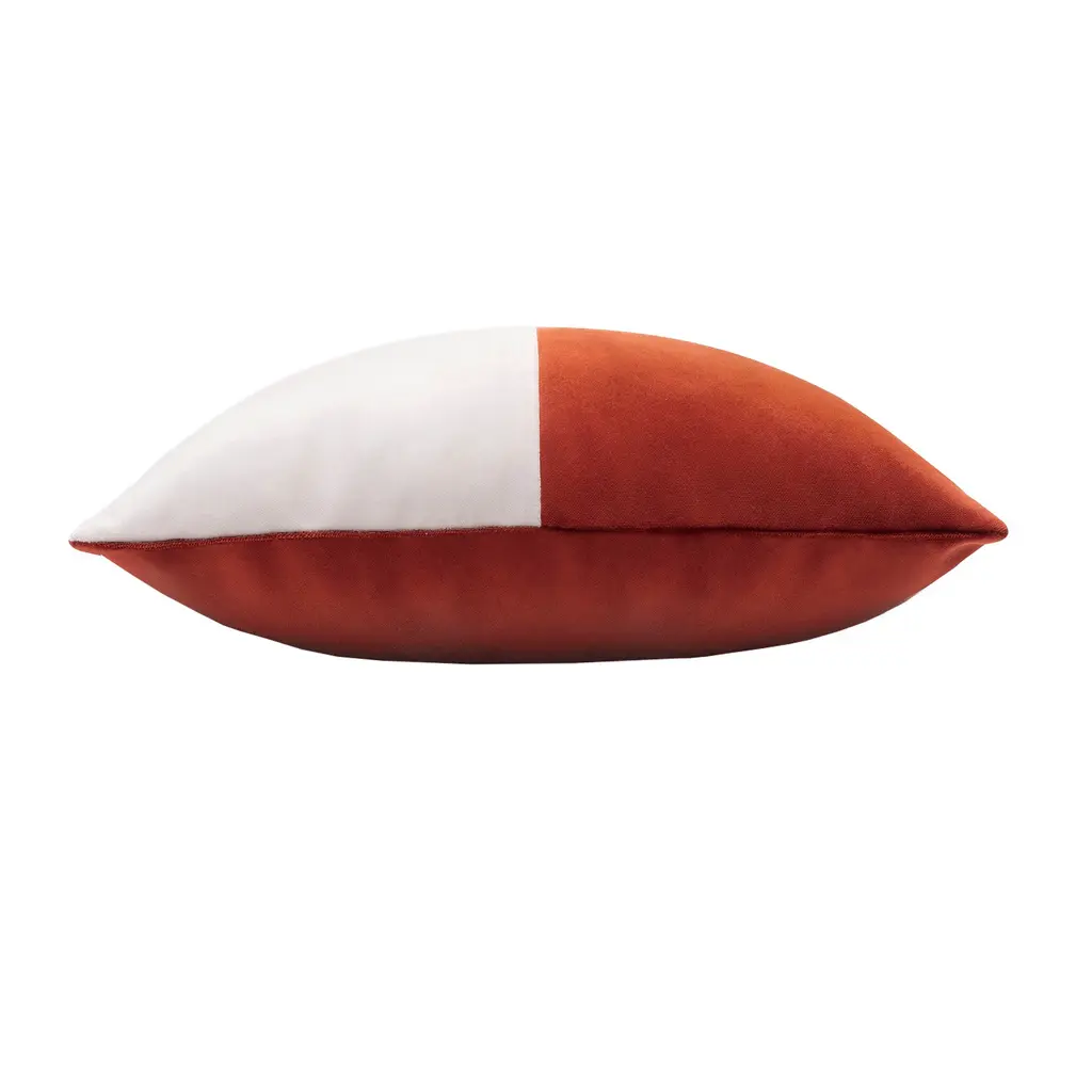 The geometrical shape of this elegant cushion is adorned with a stunning cover that is sophisticated and fresh, adding a delicate decorative accent to a modern living room. The contrasting color and aesthetic balance of this accent piece make it the perfect throw accent to a sofa and armchair in a living room or private study.Entirely handmade, LO DECOR proposes DOUBLE OPTICAL and a DOUBLE VELVET - opaque and iridescent velvet on the front and iridescent on the back - in the nuances of brick red, mustard, dark green and blue. Arranged with other cushions from the same collection, these pillows will bring a touch of color on a living room sofa or armchair, infusing modern flair to a traditionally styled interior.