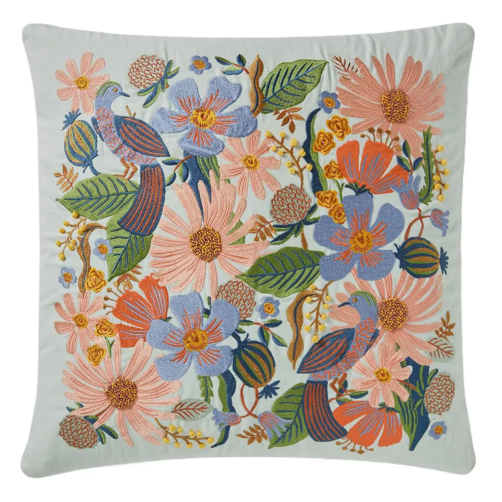 Pillows in the collaboration are a burst of florals in the lifestyle brand's signature style, based on beautiful illustrations by artist Anna Bond.