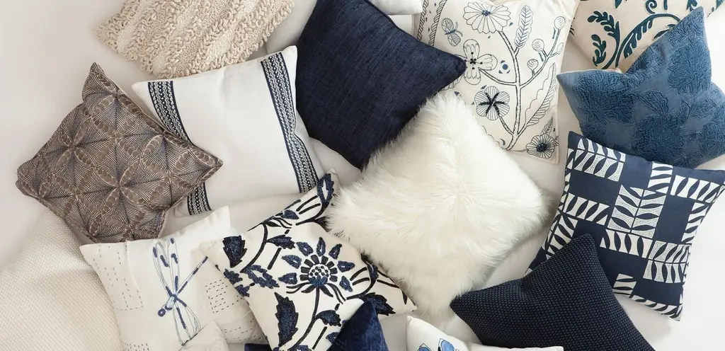This embroidered pillow is abuzz with delightful charm. The elegant, long silhouette of a single dragonfly is embroidered in a rich navy, then surrounded by patches of embroidered linen applique to capture the delicate, lace-like look and feel of its wings. Crisp, classic, and breezy, our dragonfly pillow adds a soft, nature-inspired touch to your room