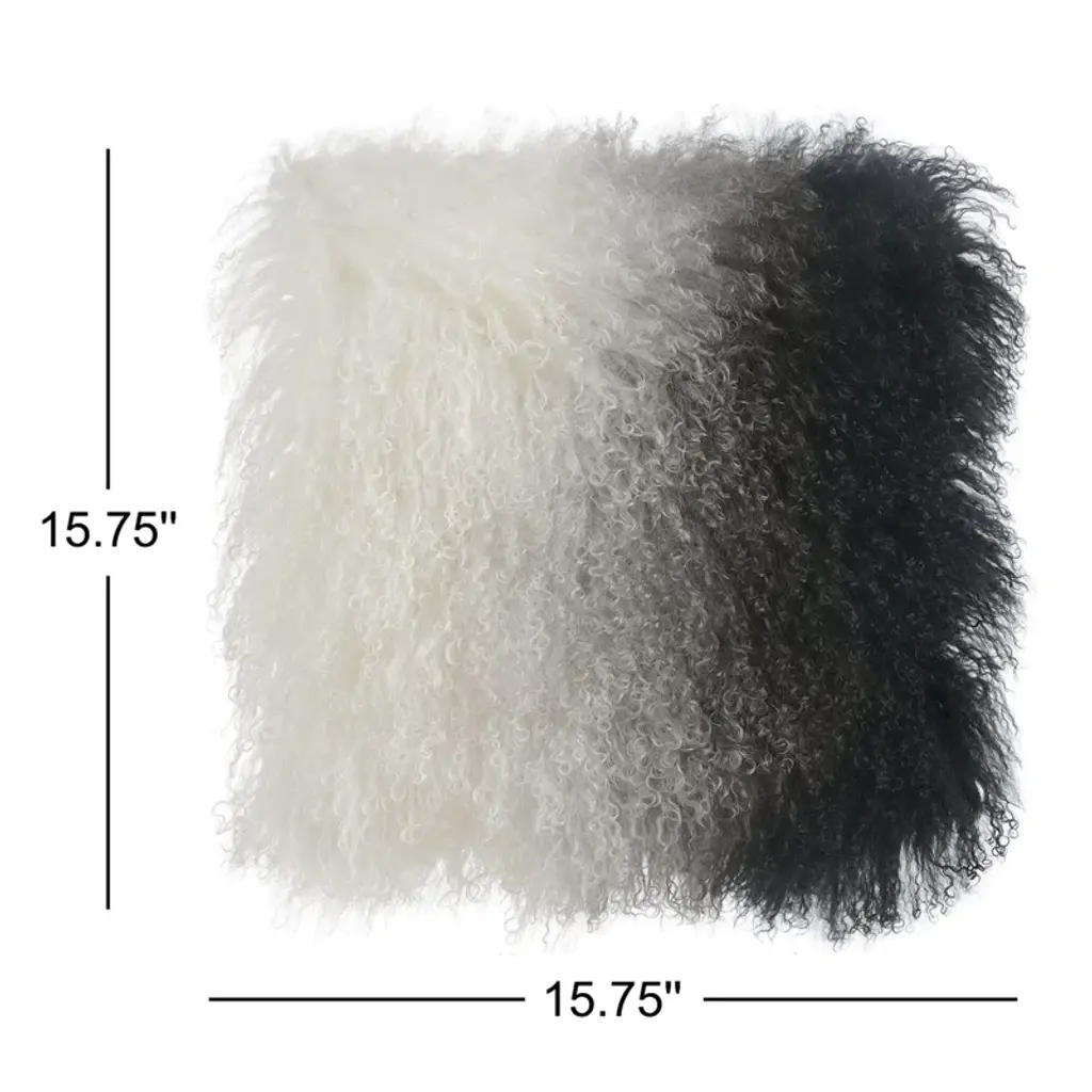 Add cozy texture to your bed or accent chair with this square throw pillow. It's made from Tibetan sheep fur in a neutral ombre hue that goes with everything – just like your favorite white tee. We love that this pillow is sewn around a foam insert, so it's ready for styling right away. Pair this fuzzy piece with a bold area rug and bright sofa for a fun, eclectic vibe.