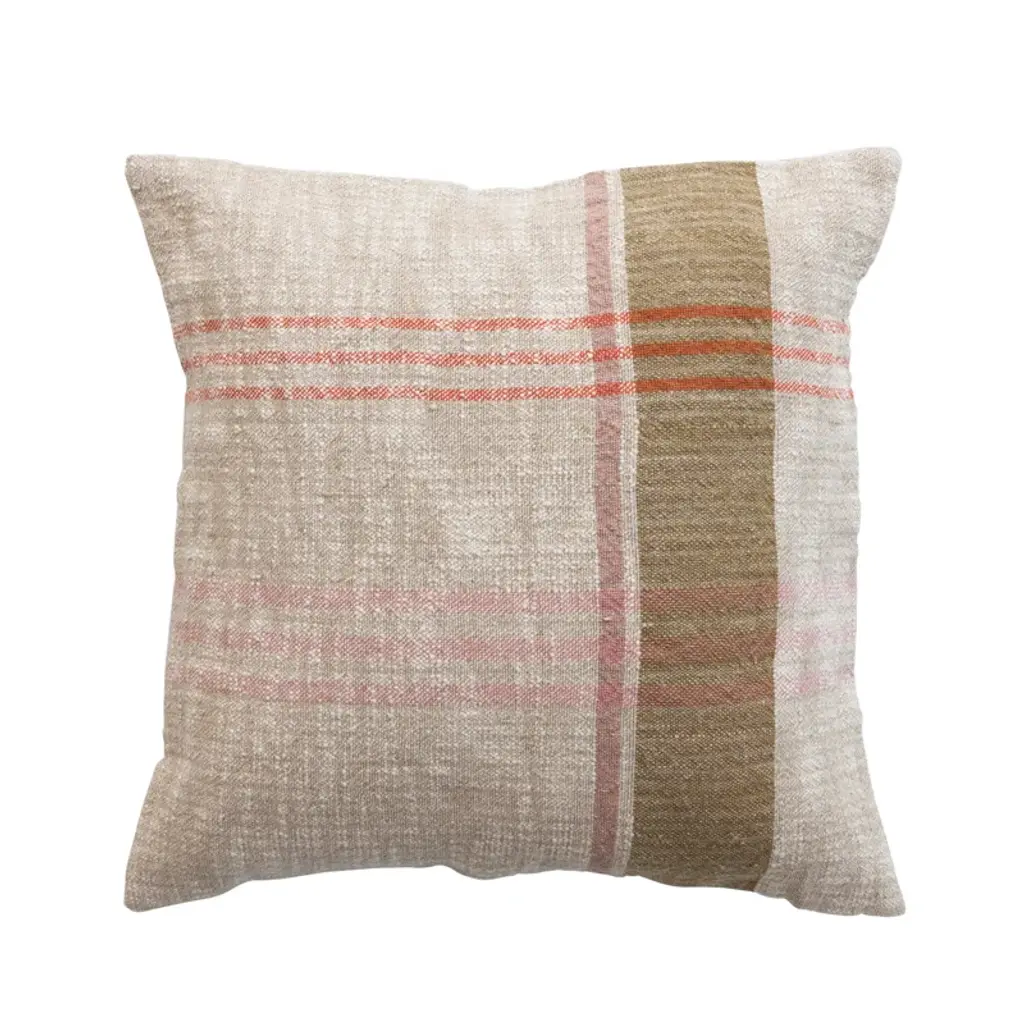 Introduce a touch of texture to any space with the Dym Pillow - Dym Stripe. This throw pillow is crafted from a blend of flax, wool, and linen, offering a naturally durable and soft feel. The design features a sophisticated colorblock stripe detail, adding a subtle yet stylish accent to your decor. The materials are artisan-made, ensuring quality without the use of toxic chemicals, making it a thoughtful addition to your home.