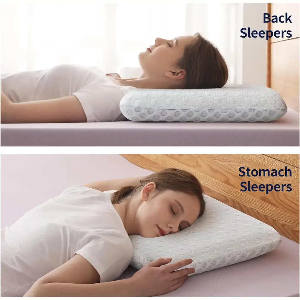 Ultra-Thin Design: At just 3.25 inches thick, this pillow is perfect for back and stomach sleepers. Its low profile helps to alleviate neck pressure and improve your sleep quality. CertiPUR-US Certified Memory Foam: Made with CertiPUR-US certified memory foam, this pillow is safe for you and the environment. It is odorless and friendly to your skin. Removable Reversible Cover: The pillow comes with a washable, double-sided cover. One side features a cooling ice silk fabric, while the other is a soft, breathable Lyocell knit. Choose the side that best suits your comfort needs. Excellent Breathability: The memory foam is designed with numerous ventilation holes. When paired with the cooling ice silk fabric, it ensures a cool and breathable sleeping experience.