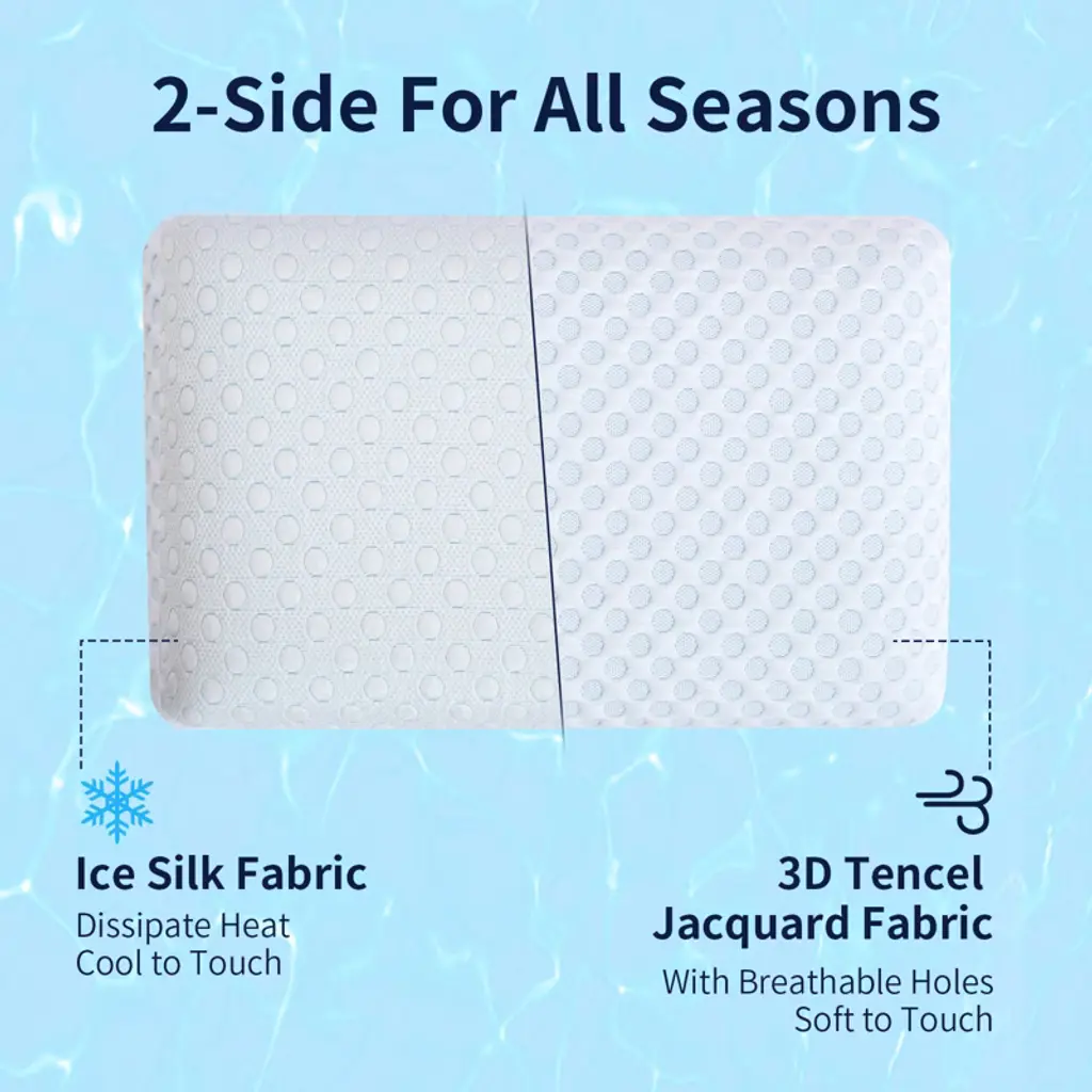 Ultra Slim Design: With a slim 2.75" profile, this pillow is ideal for both back and stomach sleepers, offering relief from neck pressure. Two-Sided Washable Pillowcase: The pillow comes with a double-sided washable pillowcase featuring cooling ice silk fabric on one side and soft breathable lyocell knitted fabric on the other side, catering to individual preferences and habits. Enhanced Breathability: Ventilated foams with breathable holes promote maximum air circulation for added comfort, especially when paired with the cooling fabric cover for a prolonged feeling of coolness. Certified Memory Foam: Made with CertiPUR-US certified memory foam, this pillow is skin friendly, making it safer for both you and the environment. Why Choose Dyonery: Dedicated to improving deep sleep, our proprietary foams and products are designed to provide excellent support and reduce motion transfer, ensuring a more restorative night's sleep for you.