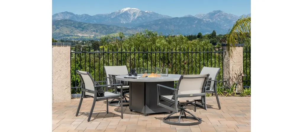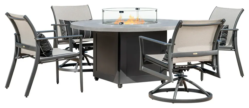 Echelon 5-Piece Sling Conversation Set With Meridian Round Fire Table, No Pillow