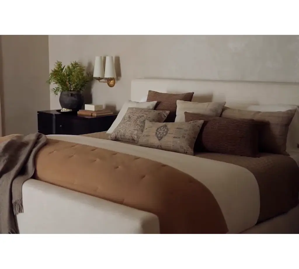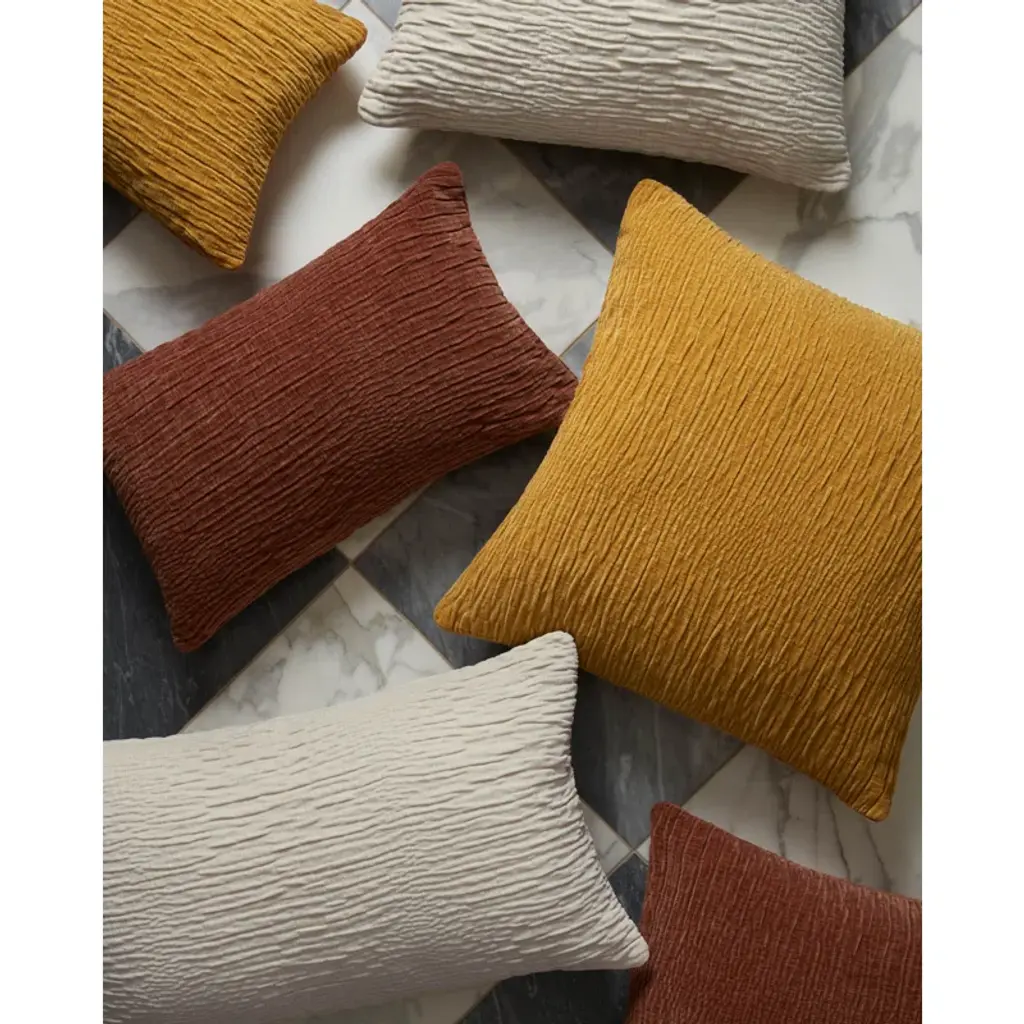 Every arrangement of throw pillows needs a textured neutral, and this jacquard woven design adds a sophisticated balance when paired with patterns. The pillow’s intricate crinkle effect creates visual depth—and is pleasing to touch, too. The pillow is 100% polyester
