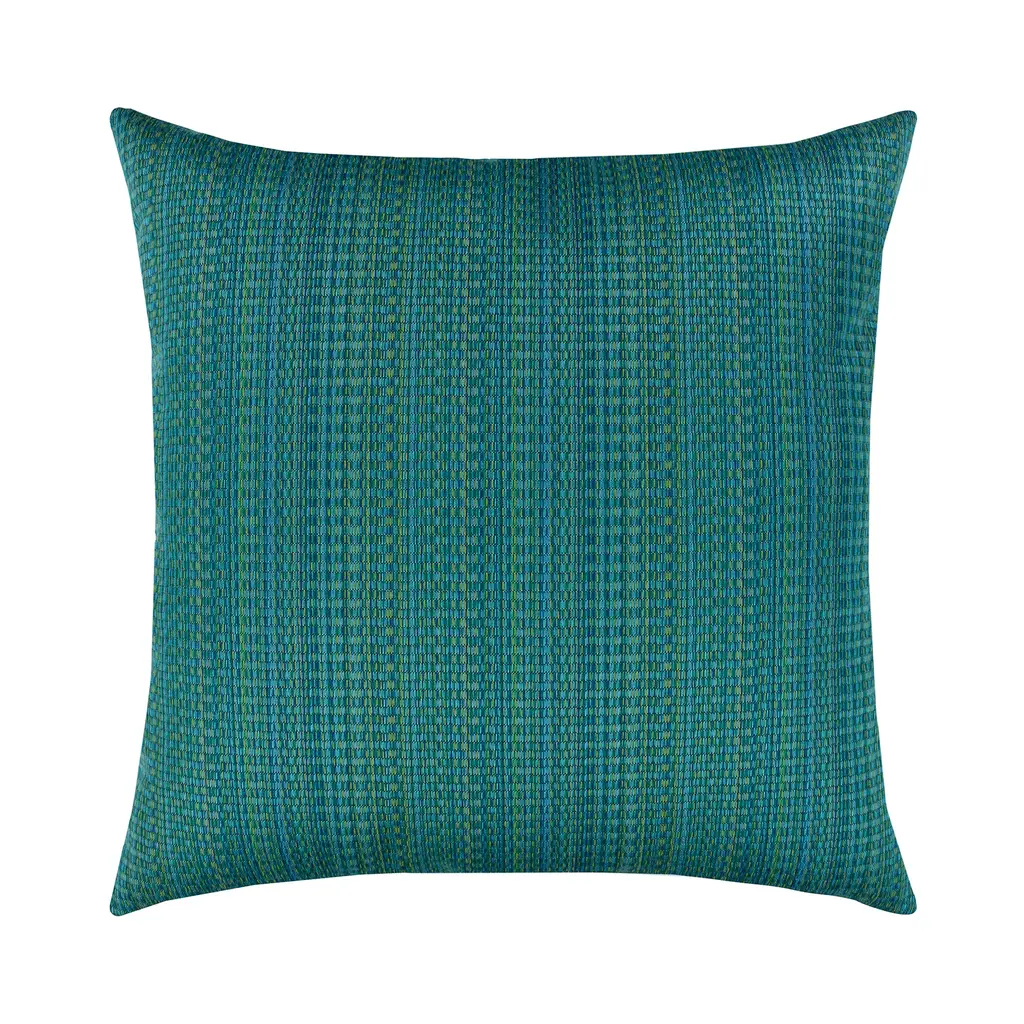 Emerald and lagoon yarns are subtly blended in this lovely woven pillow, giving it a tonal ombre stripe that features depth and texture. Features