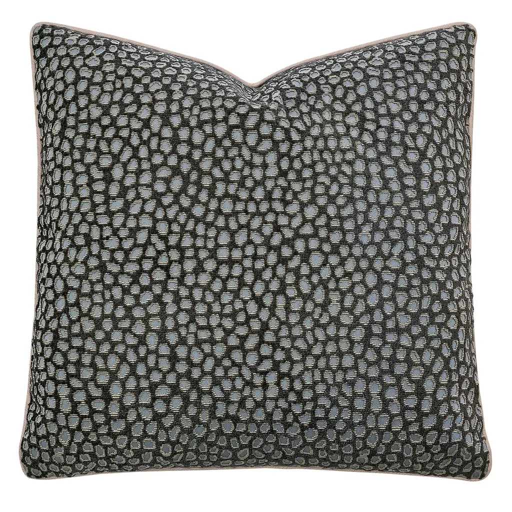 Elevate your living space with this exquisite decorative pillow, featuring a luxurious chenille fabric adorned with a captivating woven ocelot pattern. The pillow is meticulously crafted with a small welt edge finish and includes a convenient zipper closure for easy maintenance. Each pillow comes with a plush insert, ensuring both comfort and style. Designed for dry clean only, this pillow promises to be a sophisticated addition to any decor.