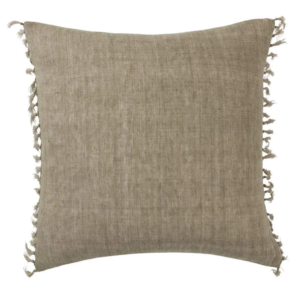Effie Coastal Light Grey Linen Tassel Throw Pillow - 20x20