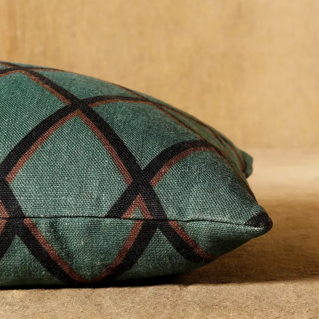 The pigmented colors of Effluvio do not perfectly penetrate the linen fabric, giving the cushion a timeworn effect. The rich hue immerses us in the intense perfume of a sacred forest in the Peloponnese. This piece is currently on show and immediately available at Artemest Galleria New York.