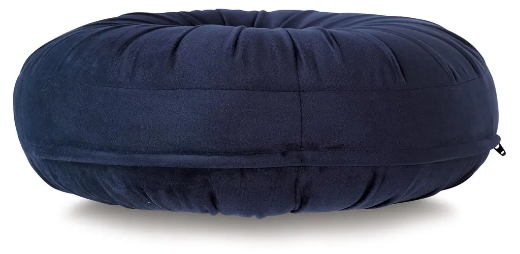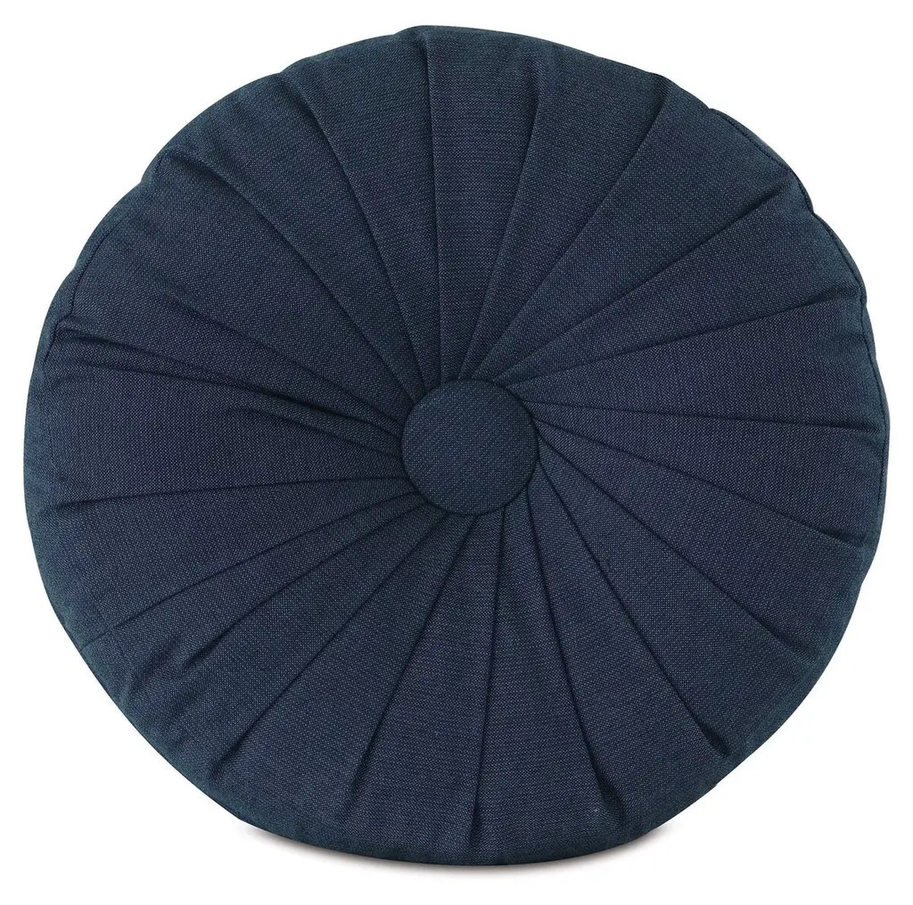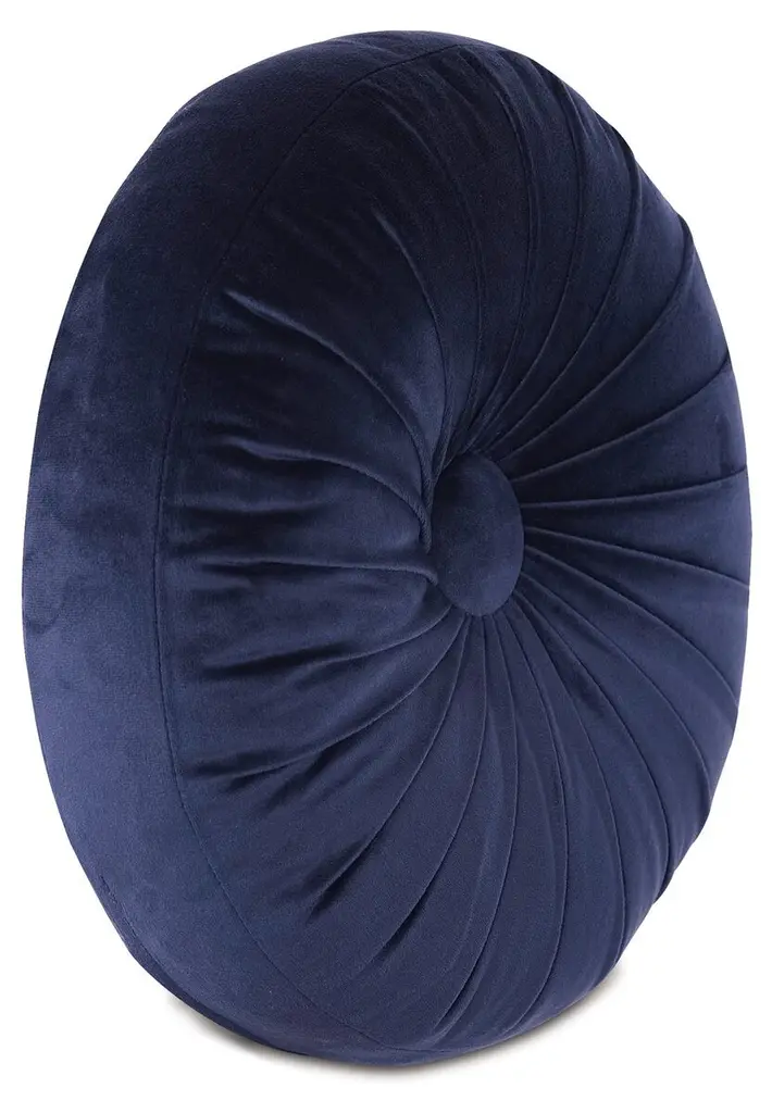 Exclusive to One Kings Lane: Round, ruched, and tufted with a center button, this velvet pillow brings a dash of the unexpected to a sofa, chair, or bed. The insert is filled with plume feathers for luxurious loftiness. Hidden zipper closure.