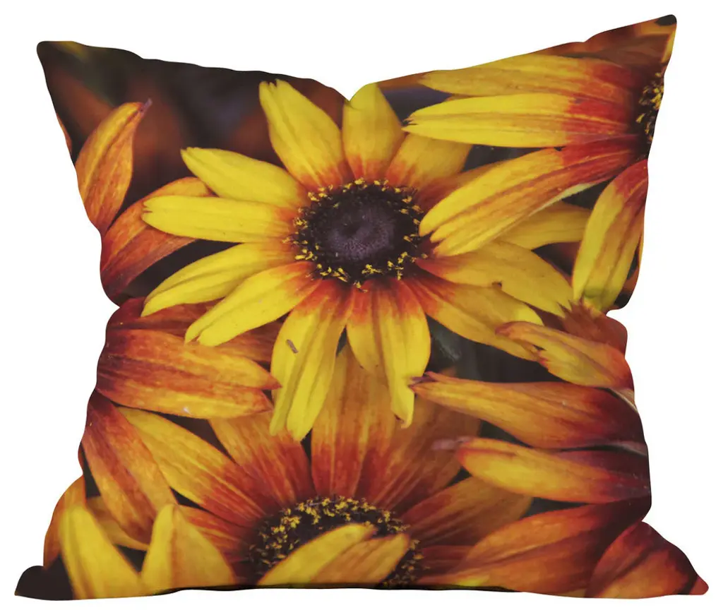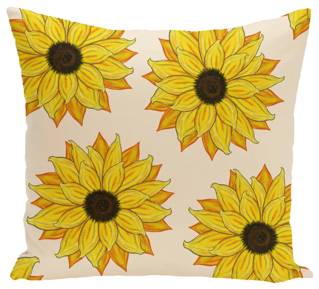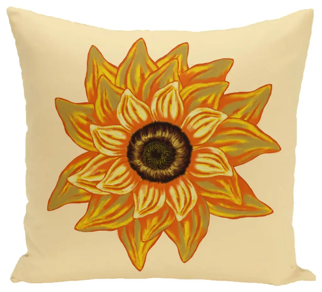 El Girasol Feliz Flower Print Pillow, Brown, 20"x20"