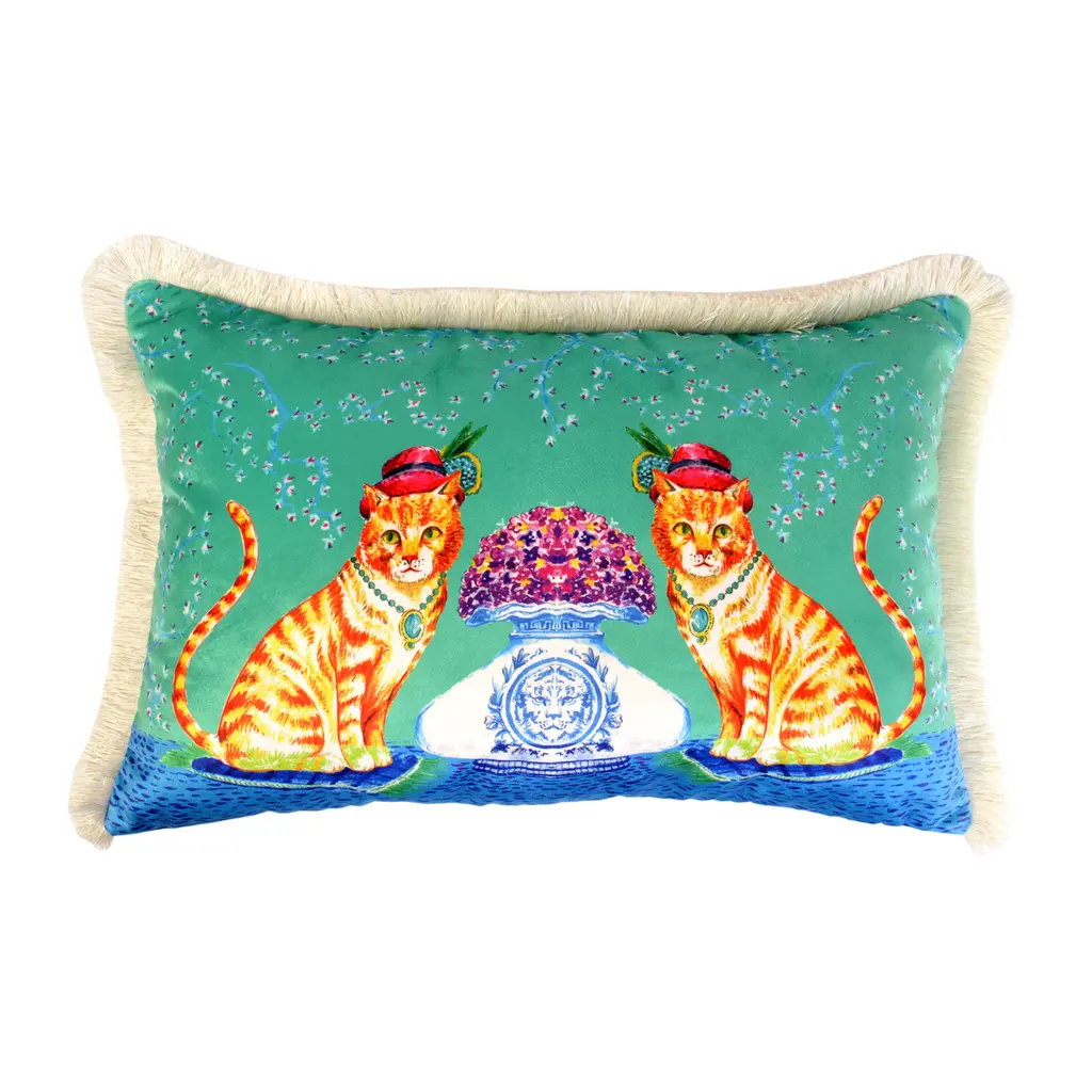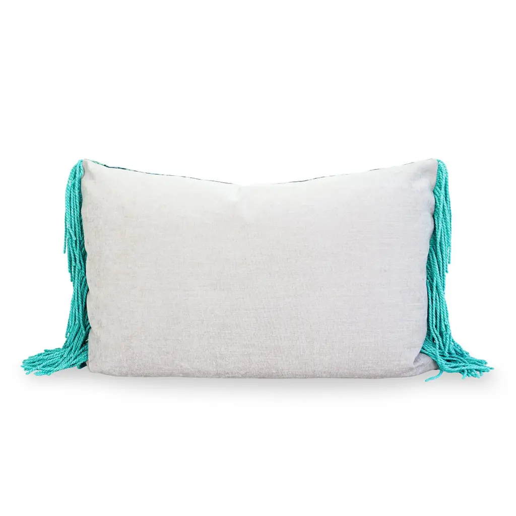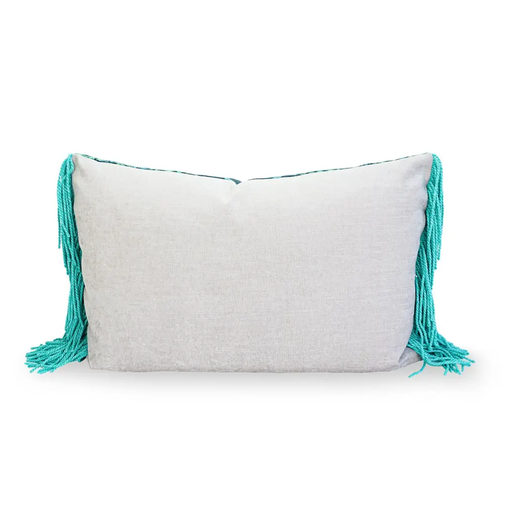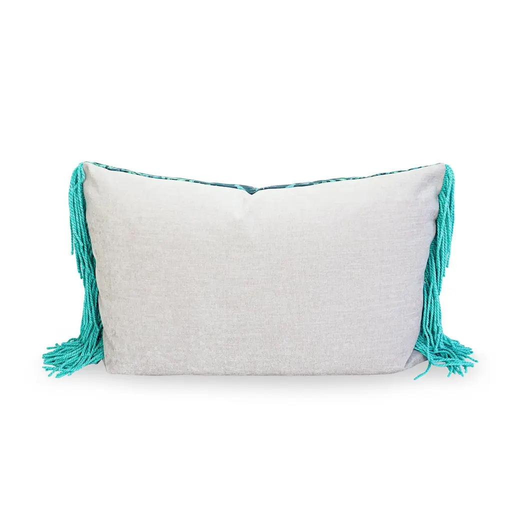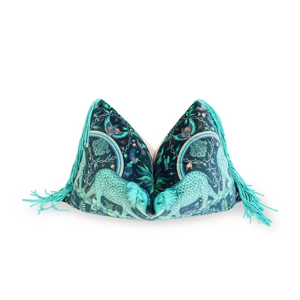 Fantastically designed oversized pillow stuffed with feather/down mix. Featuring Emma Shipley leopard spotted elephant printed velvet and tonal bullion brush fringe.Measurements:Overall: 40” W x 12” D x 24” HPrice As Shown: $1,230 eachCOM Price: $420 eachCustomization may change price.How we work:Made to order by Connecticut-based furniture design and manufacturing company The Tailored Home. Submit your customization desires by 1stdibs messenger for a quote. After orders are placed our workshop manager creates a visual work order for your approval for quality assurance.Customization options:Dimensions can be customized.The fabric shown may come in more colors. We also carry thousands of other materials and can send you samples and fabric pricing upon request. We accept your fabric for a COM fee of 5% of the cost of the piece. Welting, piping, tape or trim can be added. Different species available for pieces with exposed wood and can be painted & lacquered in any Benjamin Moore color (for additional charge) or stained in one of our stain options. Custom color matches cost $75 per sample.We accept inspiration photos of pieces you like.2021 - Made to orderThis piece can be made as is or custom made with customer’s choice of materials and size adjustments.9-10 weeks.