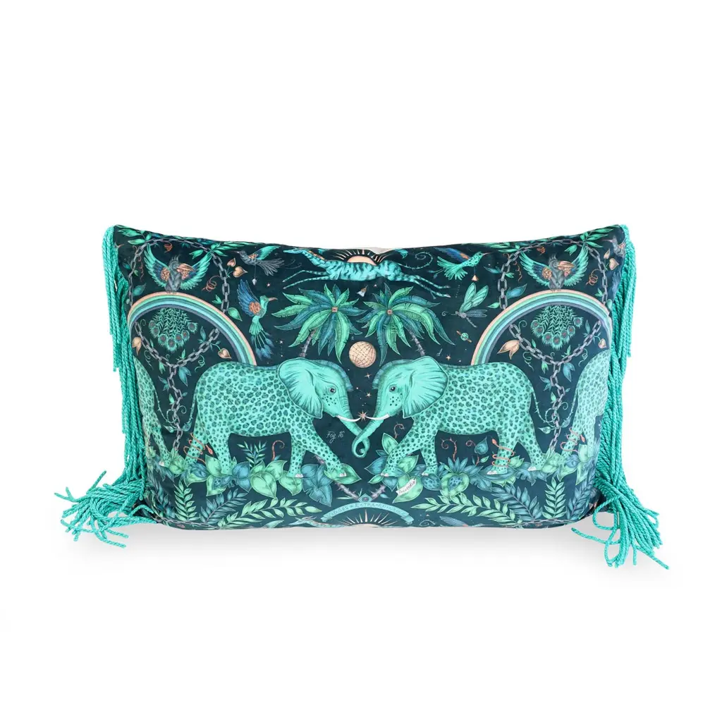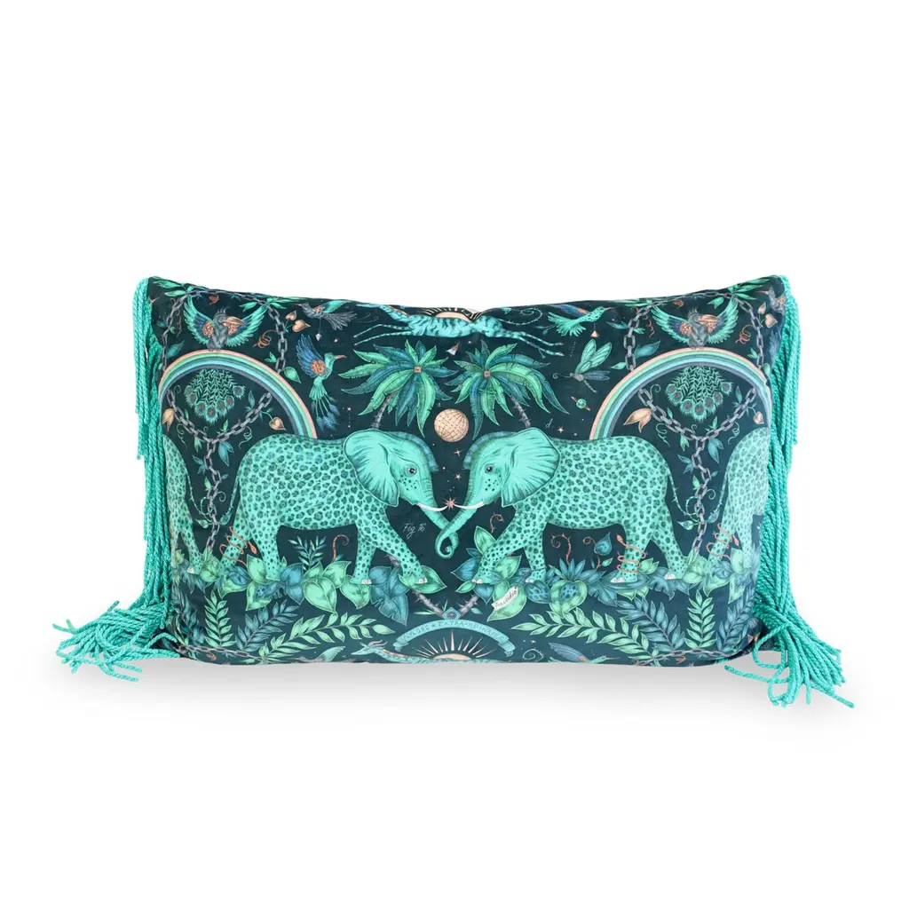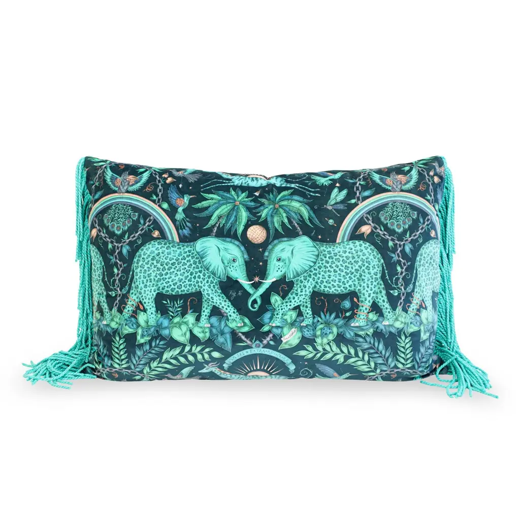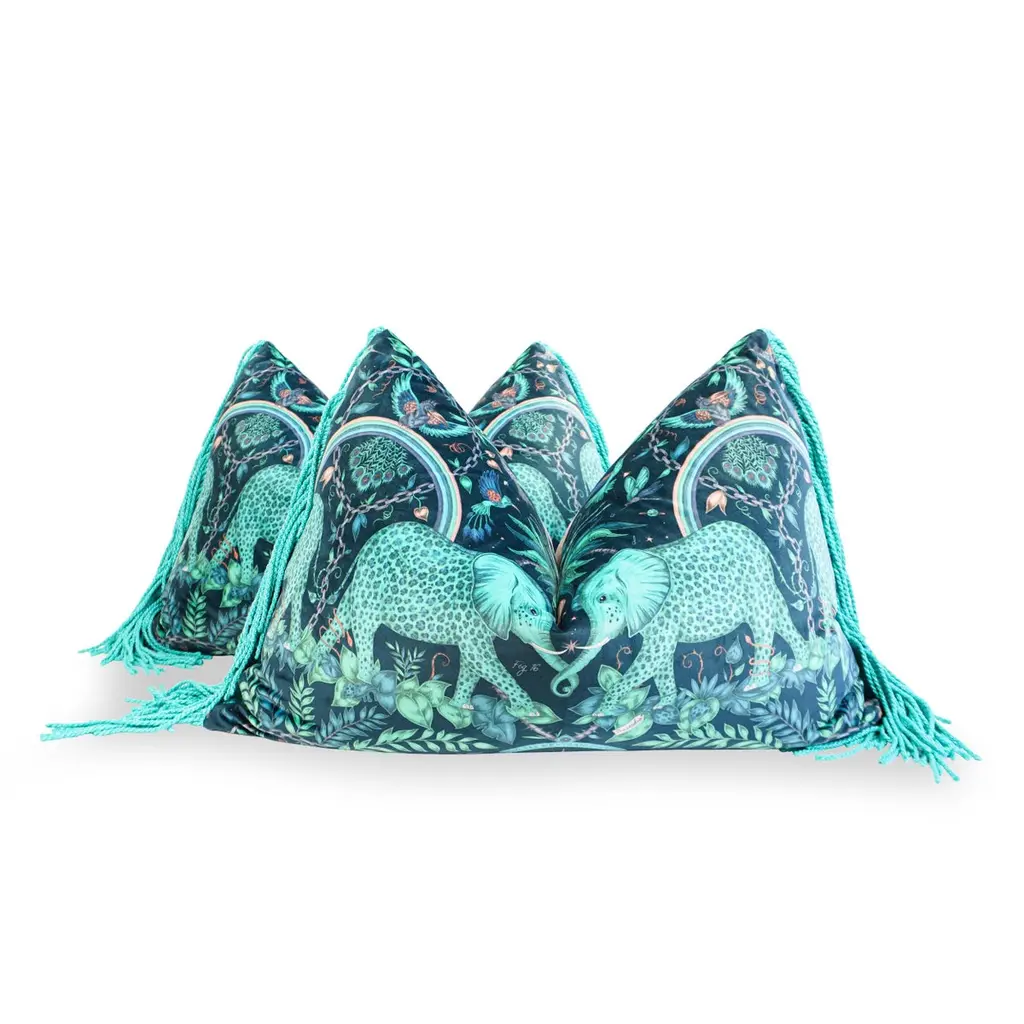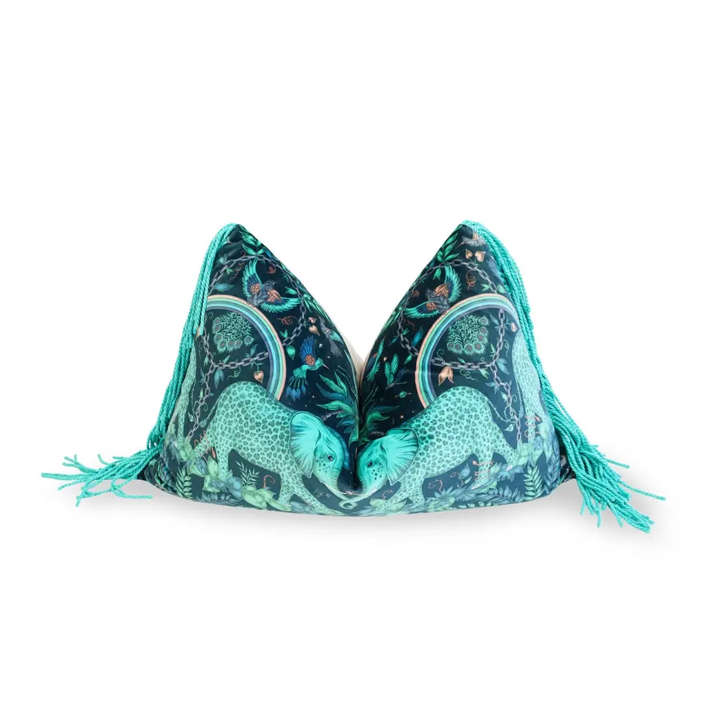 Elephant Leopard Oversized Velvet Pillow With Bullion Trim