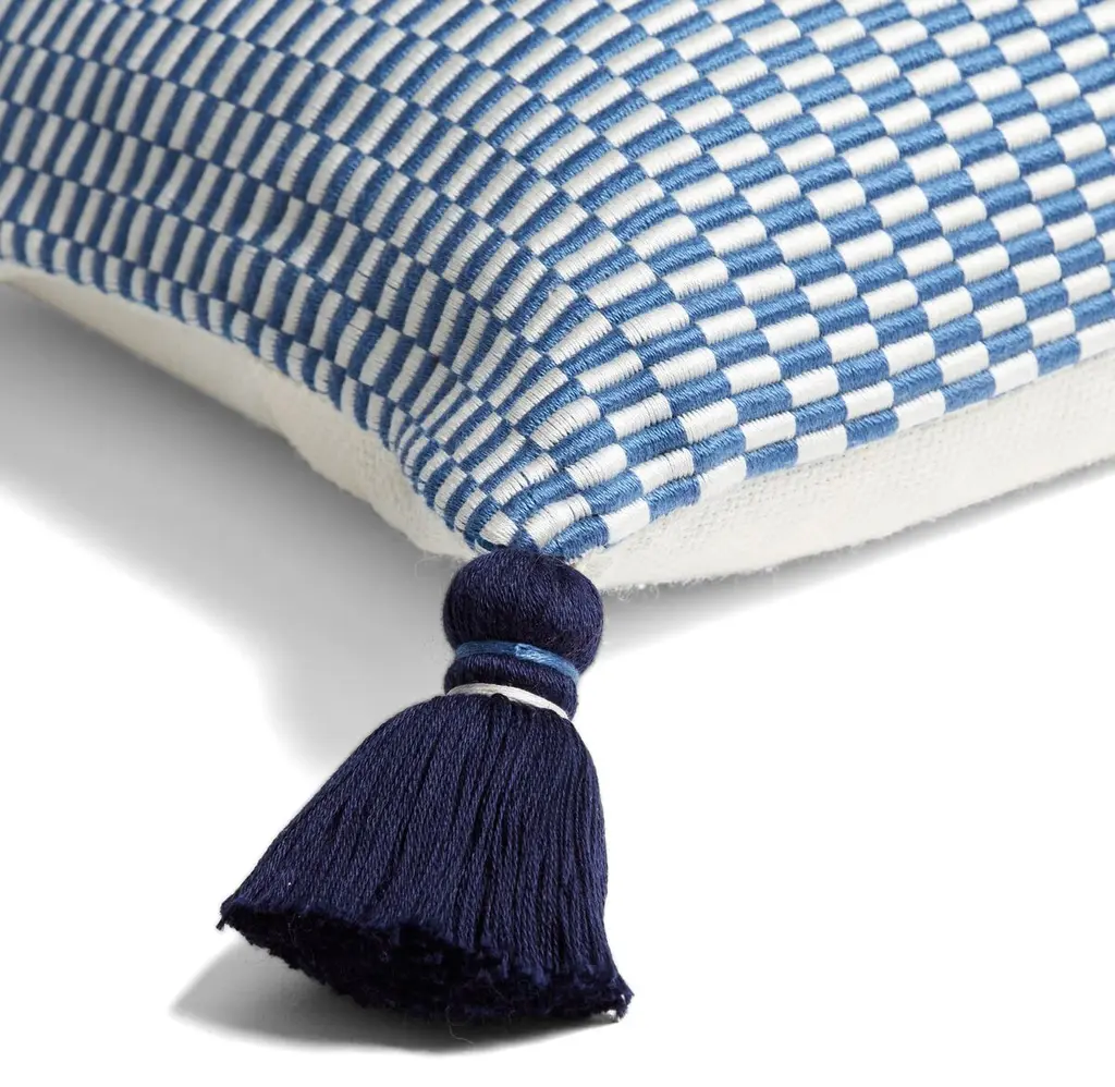 Handwoven by artisans using cotton yarn in an Incan backstrap loom, this colorful, textural pillow brightens up any space. Contrasting tassels at each corner add a playful edge. Solid back. Insert included.