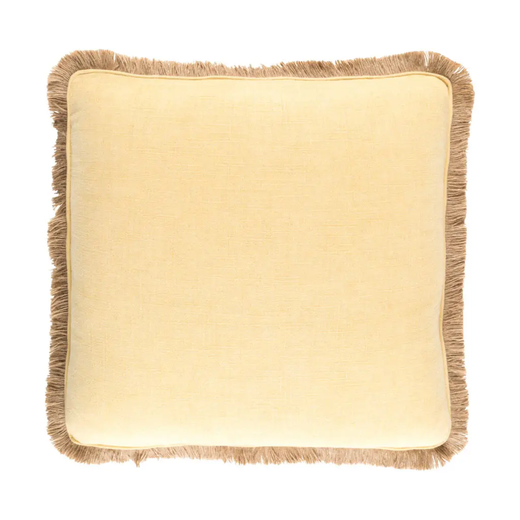 A pure and simple choice is an easy one to make! With these splendid and humbling pillows you have a wonderful design coupled with comfortability. Made in China from 55 percent Linen and 45 percent Viscose, Hand woven. These pieces have a fringed edge and come in a variety of color. Spot clean only.