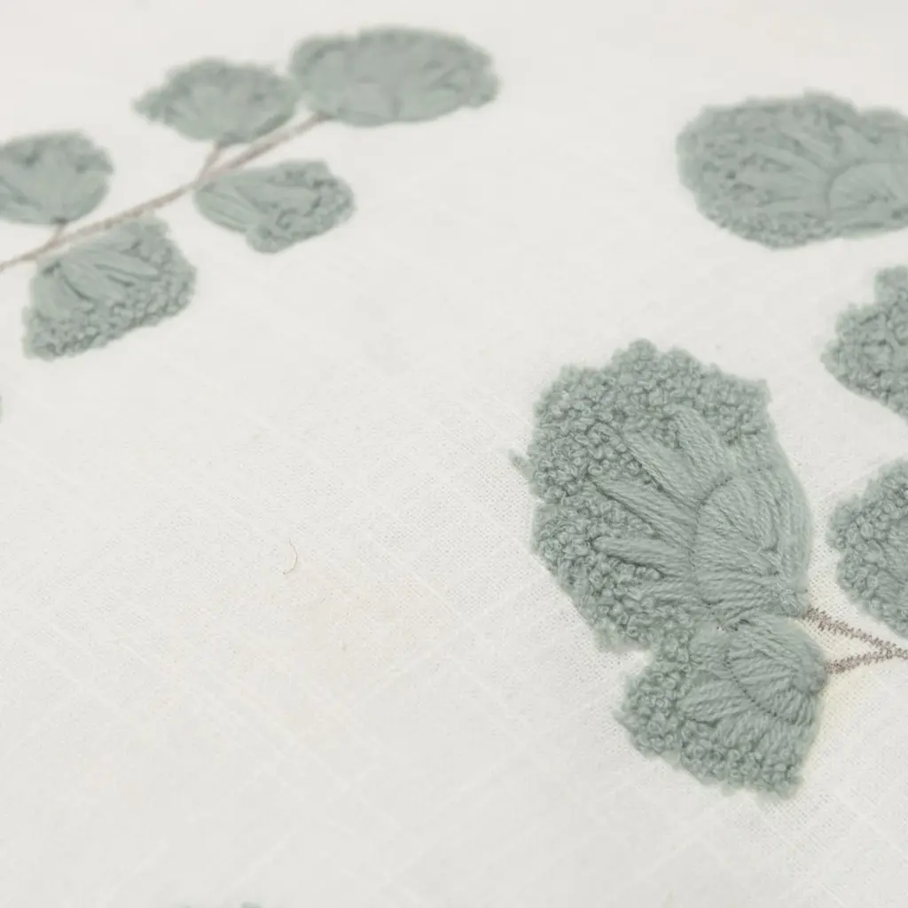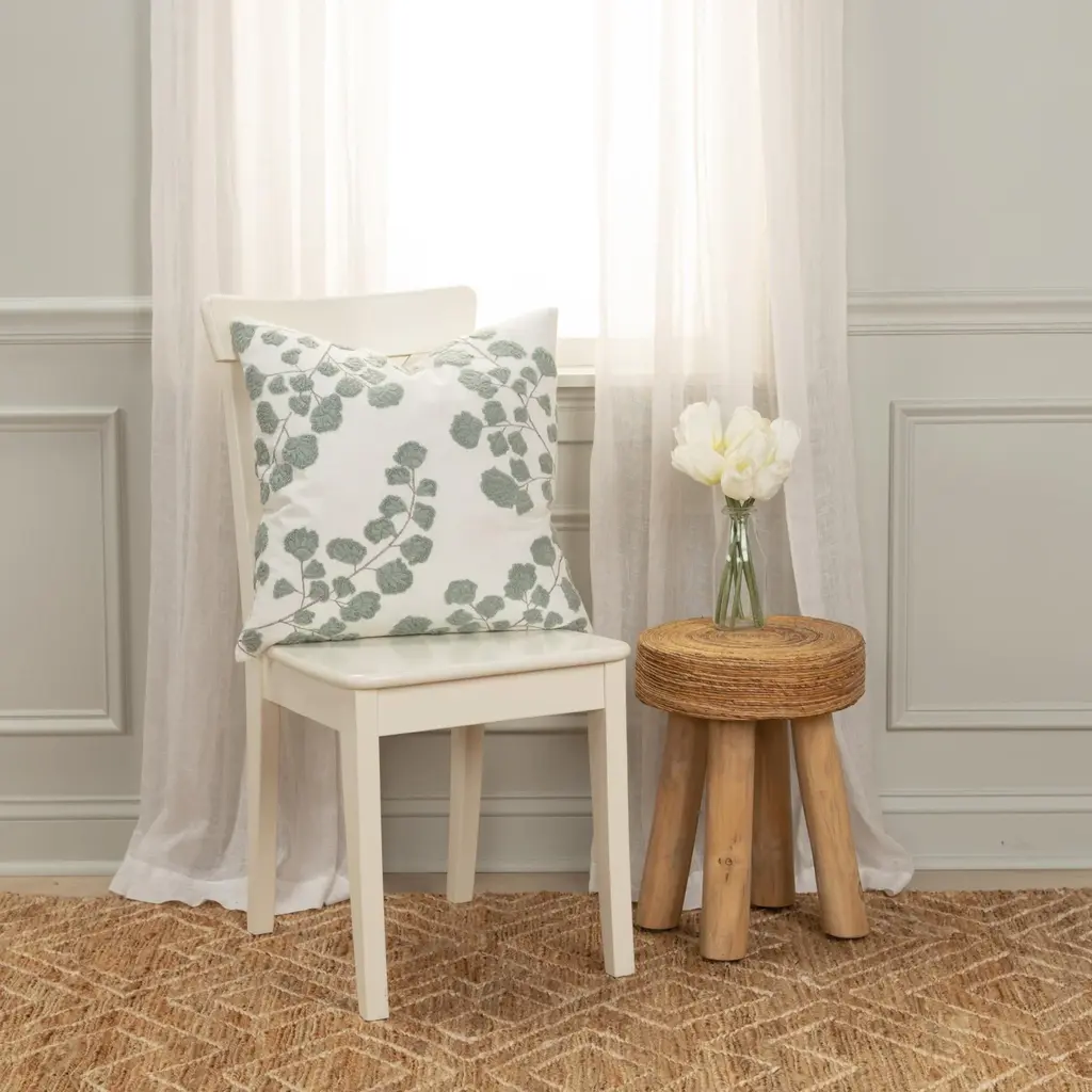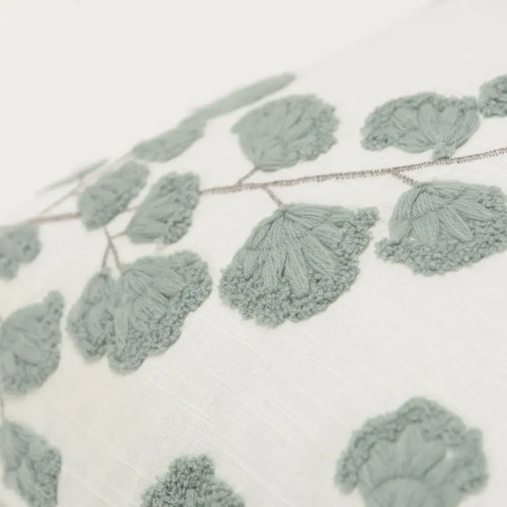 Embroidered Cotton Botanical Decorative Throw Pillow - Ivory/grey