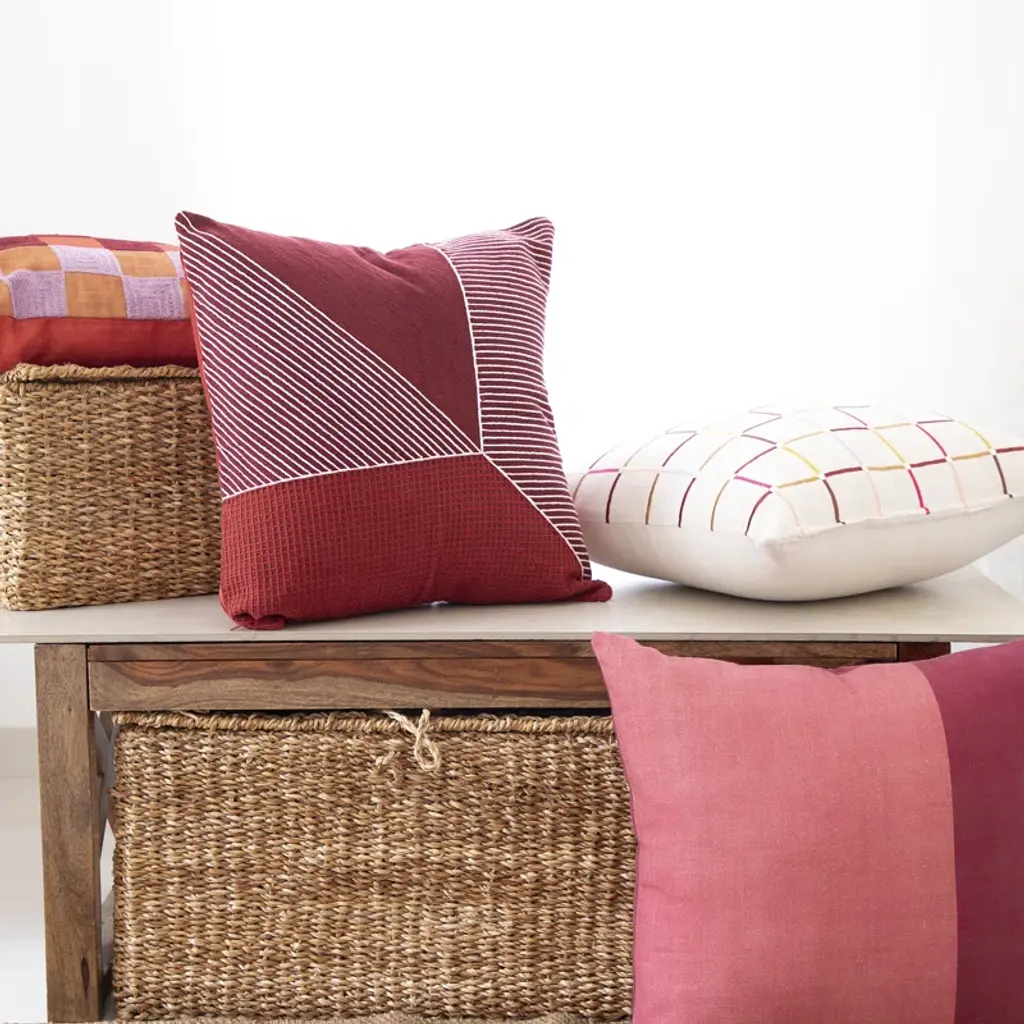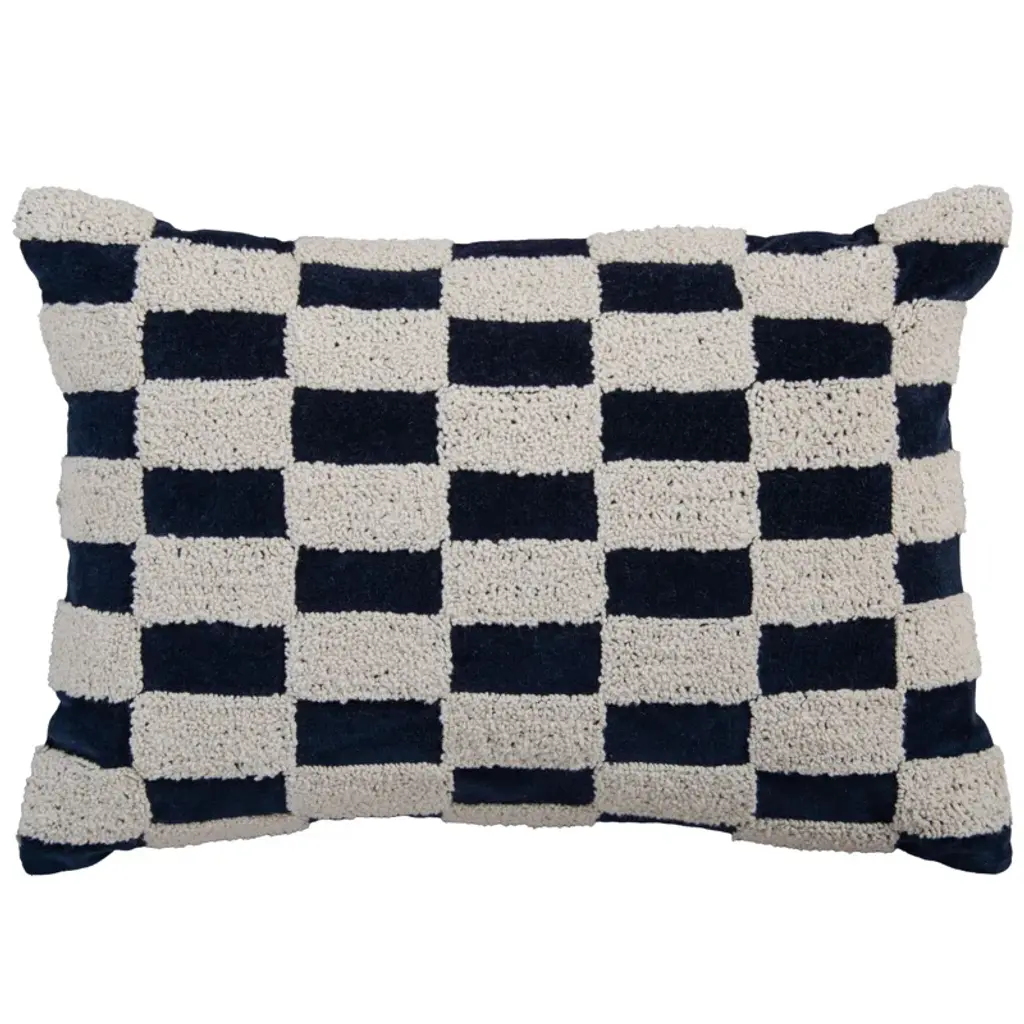 Introducing our Contemporary Checkered Hand-Woven Throw Pillow. Meticulously hand-woven from 100% polyester, this throw pillow features an intriguing blend of checkered and color block designs, making it the perfect choice for modern, contemporary, transitional, and casual decor styles. This versatile and stylish decorative throw pillow effortlessly adds a touch of sophistication to your living space. Whether it graces your sofa, bed, or favorite armchair, the combination of navy and multi-color seamlessly complements various decor aesthetics, offering both style and comfort. Crafted in India, this throw pillow is more than just an accent; it's a symbol of quality and artistry, making a bold and timeless statement in your home. Redefine your decor effortlessly with this Contemporary Checkered Hand-Woven Throw pillow available in cover only, polyfilled, or down filled options.
