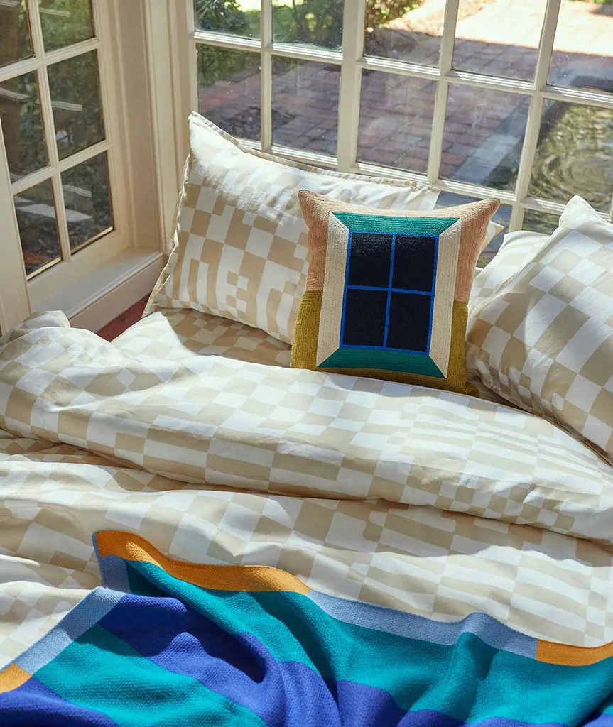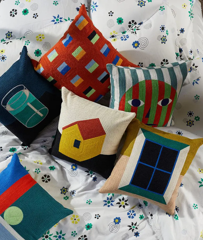 Home textiles from Dusen Dusen, a fashion brand known for its bold, original prints. The collection is inspired by fine art, commercial and naive design, as well as the brain's reaction to color, movement, and contrast.