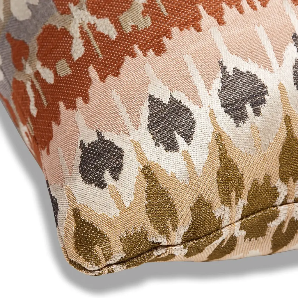 Designed by us and available only at One Kings Lane: Bring color and pattern to the bed or sofa with this pillow, crafted of plush cotton-blend fabric printed with a vibrant ikat-inspired pattern. Insert included.