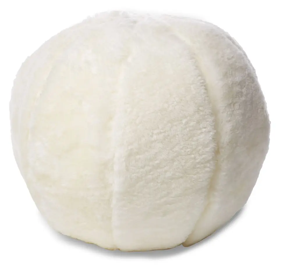 Designed by us and available only at One Kings Lane: Dress up a favorite sofa or chair with this paneled ball-shaped pillow, made from plush ivory shearling. We love how its unique shape adds a playful note. Insert included.