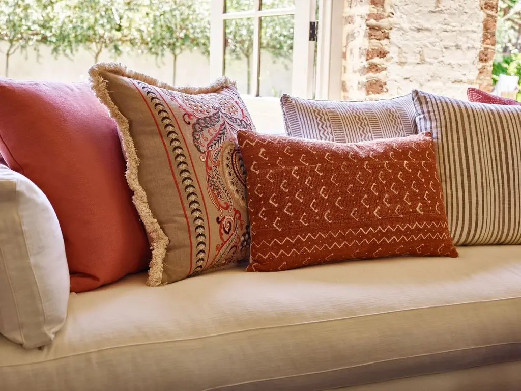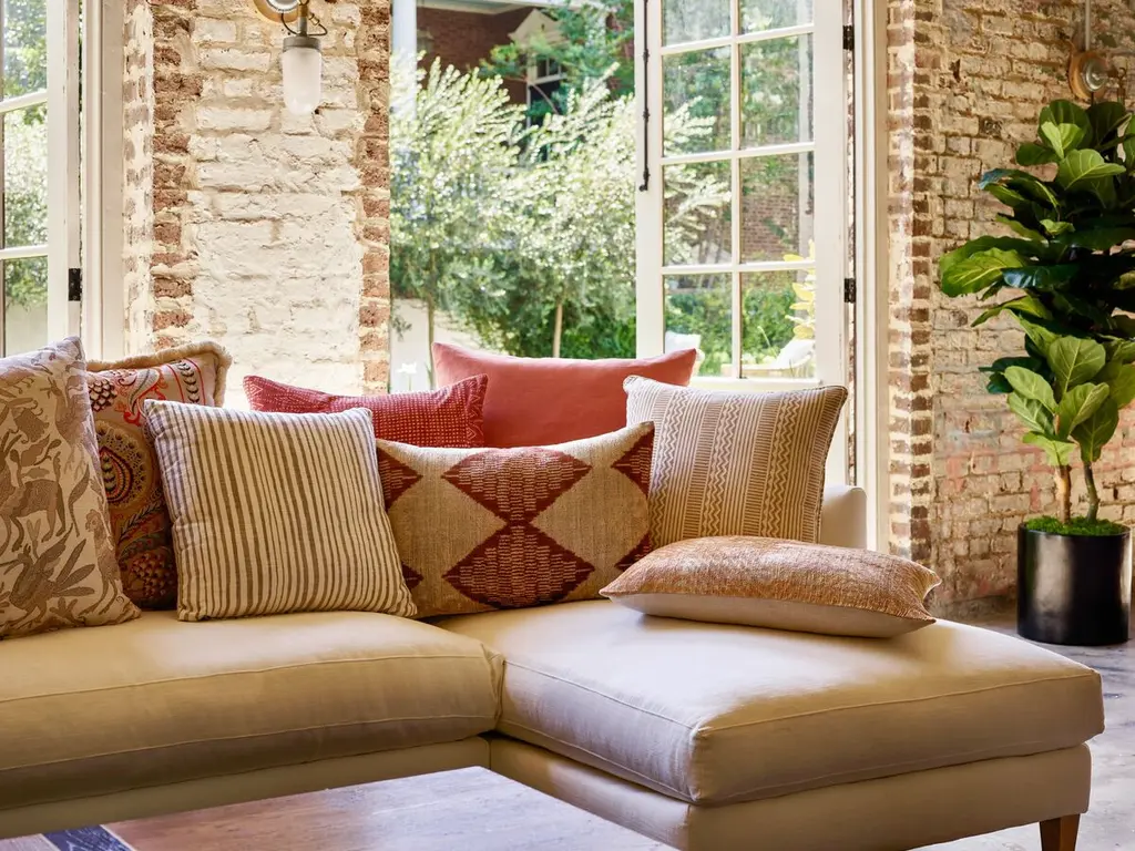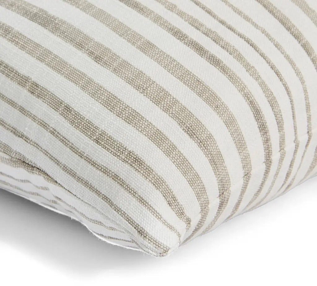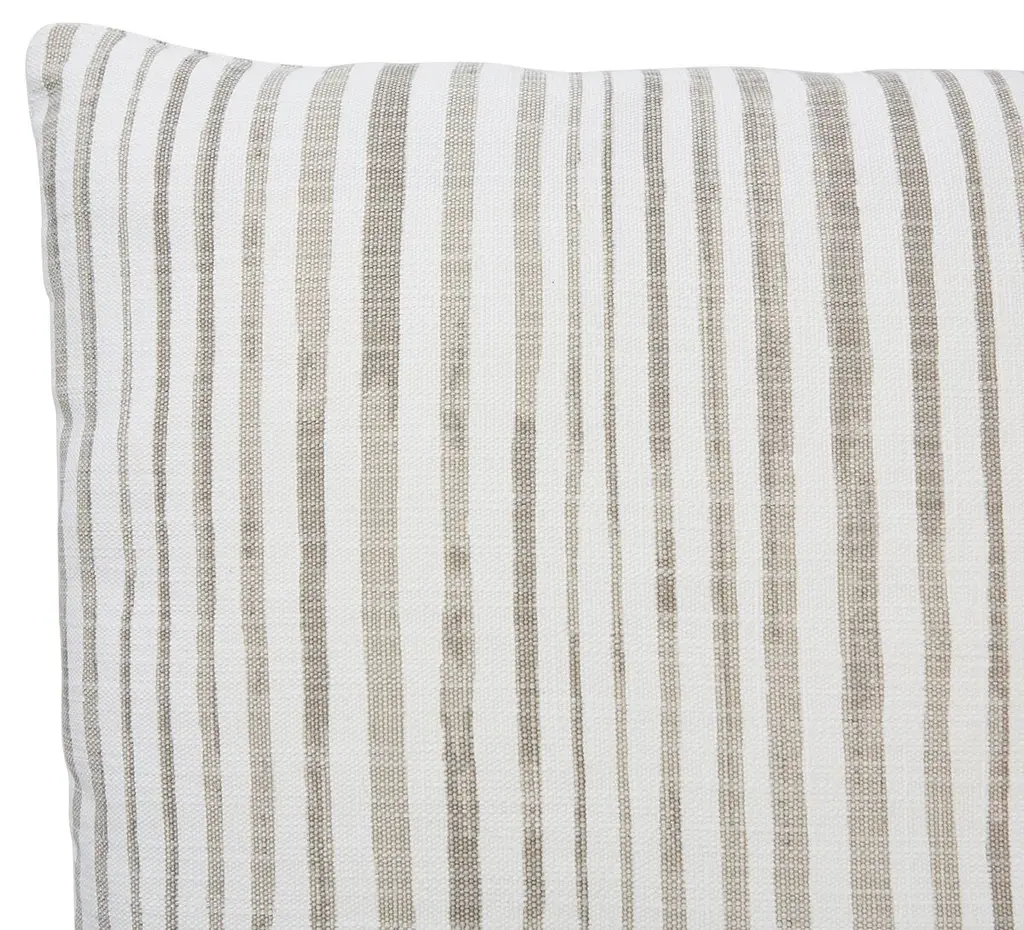 Designed by us and available only at One Kings Lane: Boasting bold stripes in versatile neutrals, this cotton-blend pillow is perfect for any sofa, bed, or chair. Reversible; design is on both sides. Insert included. Made in the USA.