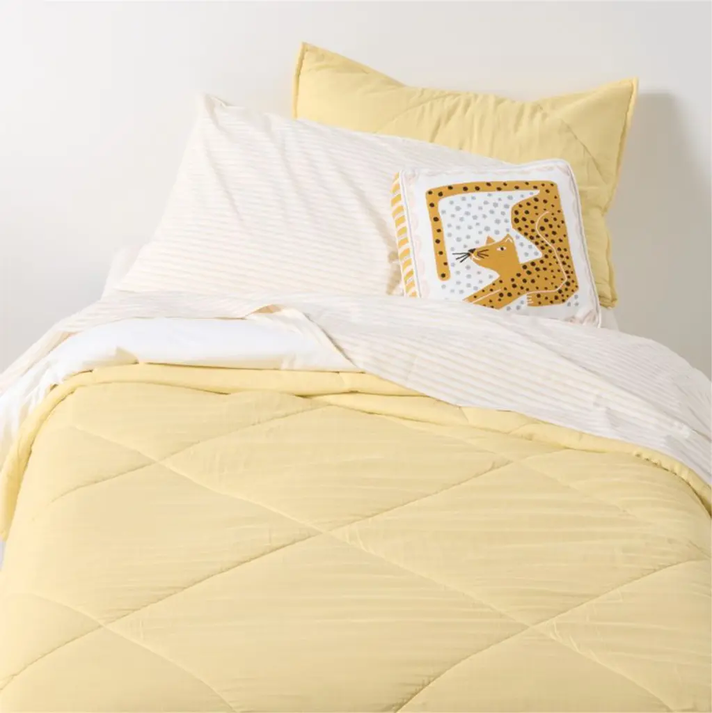 From the depths of the rainforest to the wilds of your child's bedroom: introducing our Lorena Leopard Throw Pillow. Part of our Endangered Animal collection, the colorful pillow brings graphic pattern and sweet personality to a bed, and it coordinates with a wide range of our bedding. It reverses to a sunwashed stripe pattern.