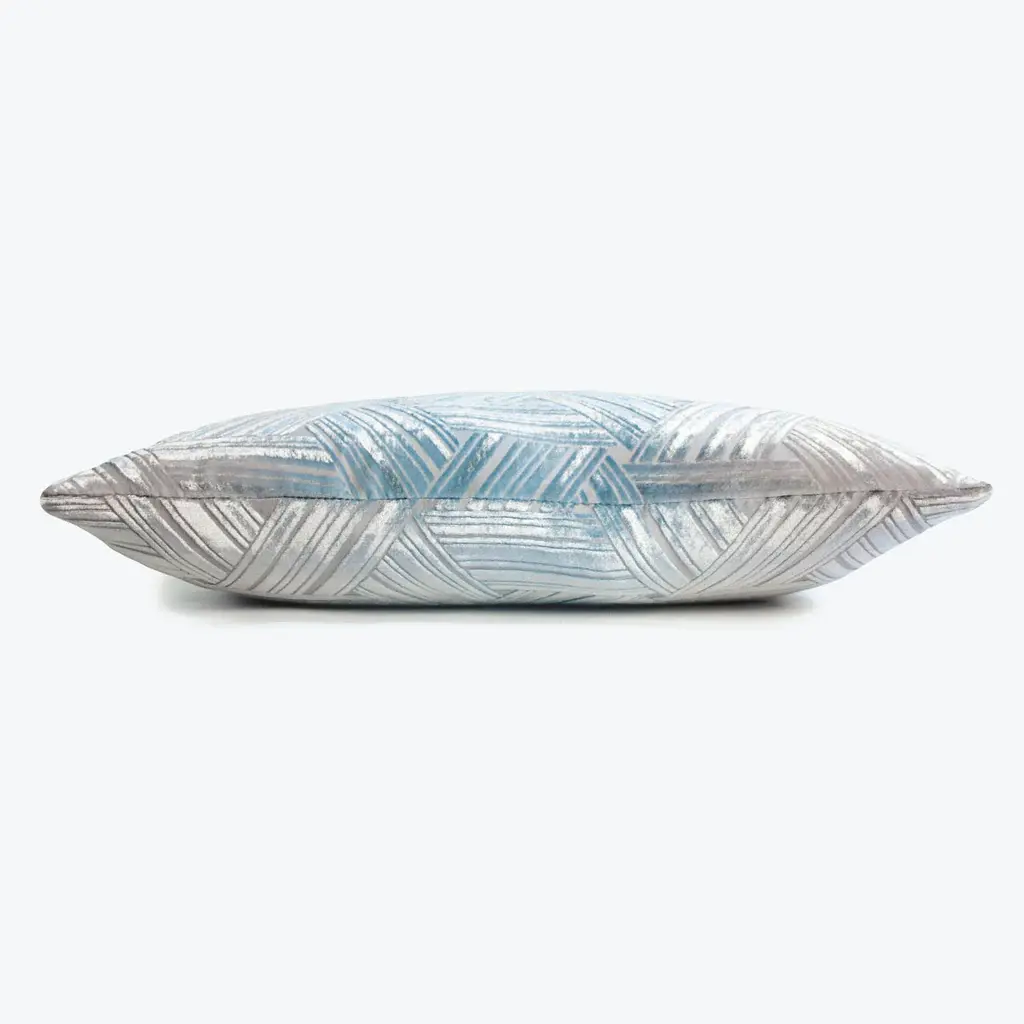 Silk velvet is dyed and transformed with lustrous hues, creating a throw pillow that adds radiance and texture to the home. A modern interpretation of heirloom quality craftsmanship, the Kevin O'Brien velvet throw pillow exudes an air of levity and elegance. Entirely covered in high and low lines of velvet and silk, this texturally fascinating pillow mesmerizes the eye with colorful allure. This design began in Kevin’s sketchbook, was printed on silk velvet, then hand-painted in small batches by artisans in Philadelphia. Dye is applied by hand in layers on the velvet fiber surface. Variations in color are part of the nature of their unique dying process.