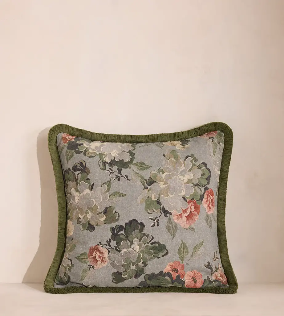 The soft hues of this handprinted floral motif will complement a wide range of palettes. The down pillow fill ensures long-lasting comfort. Printed on both sides.