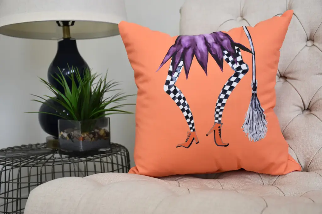 Create a festive and fun atmosphere in your home this halloween season with E by Design''s Witches Brew Esmerelda Orange Halloween decorative pillows. These quirky pillow designs are the perfect way to enhance your fall decor. These pillows are perfect for any bedroom, sitting room, living room, or any furniture that needs a touch of stylish comfort!