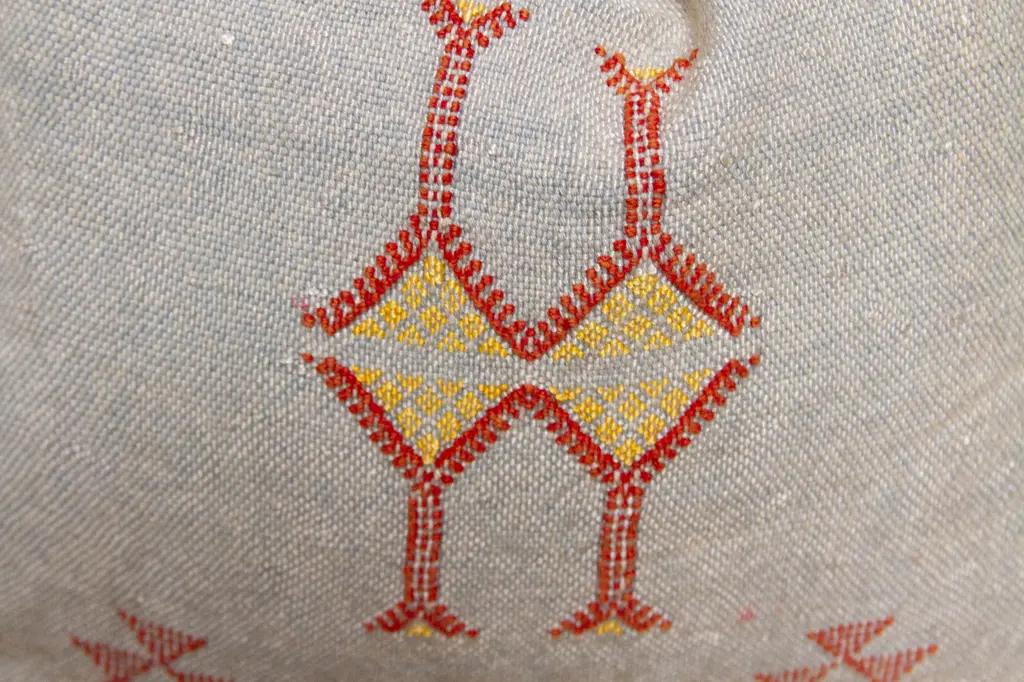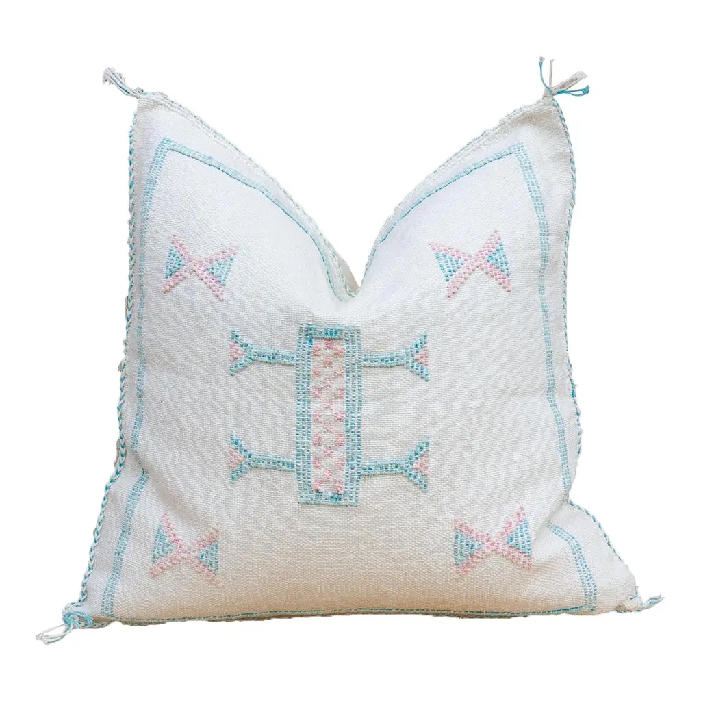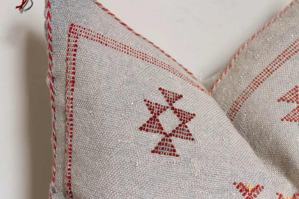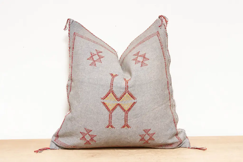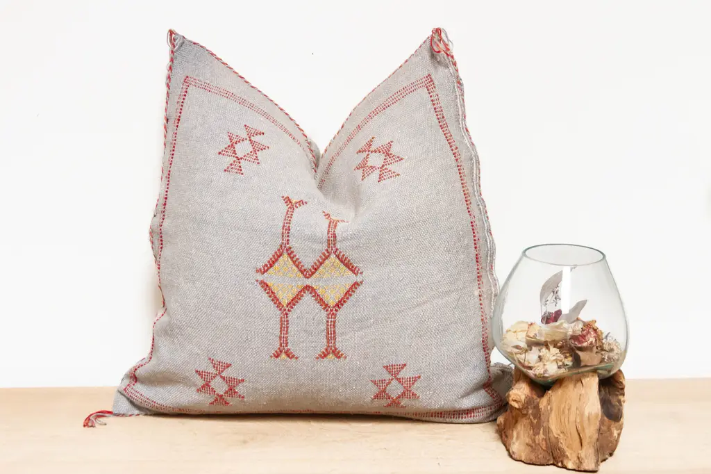 Indulge in the luxury of our handcrafted Moroccan cactus silk pillow. Each cactus silk pillow is a testament to centuries-old Berber tradition, woven from the resilient fibers of the Saharan aloe vera cactus. Adorned with one-of-a-kind tribal embroidery, meticulously dyed with natural vegetable pigments, this handmade pillow showcases the artistry of Moroccan artisans.